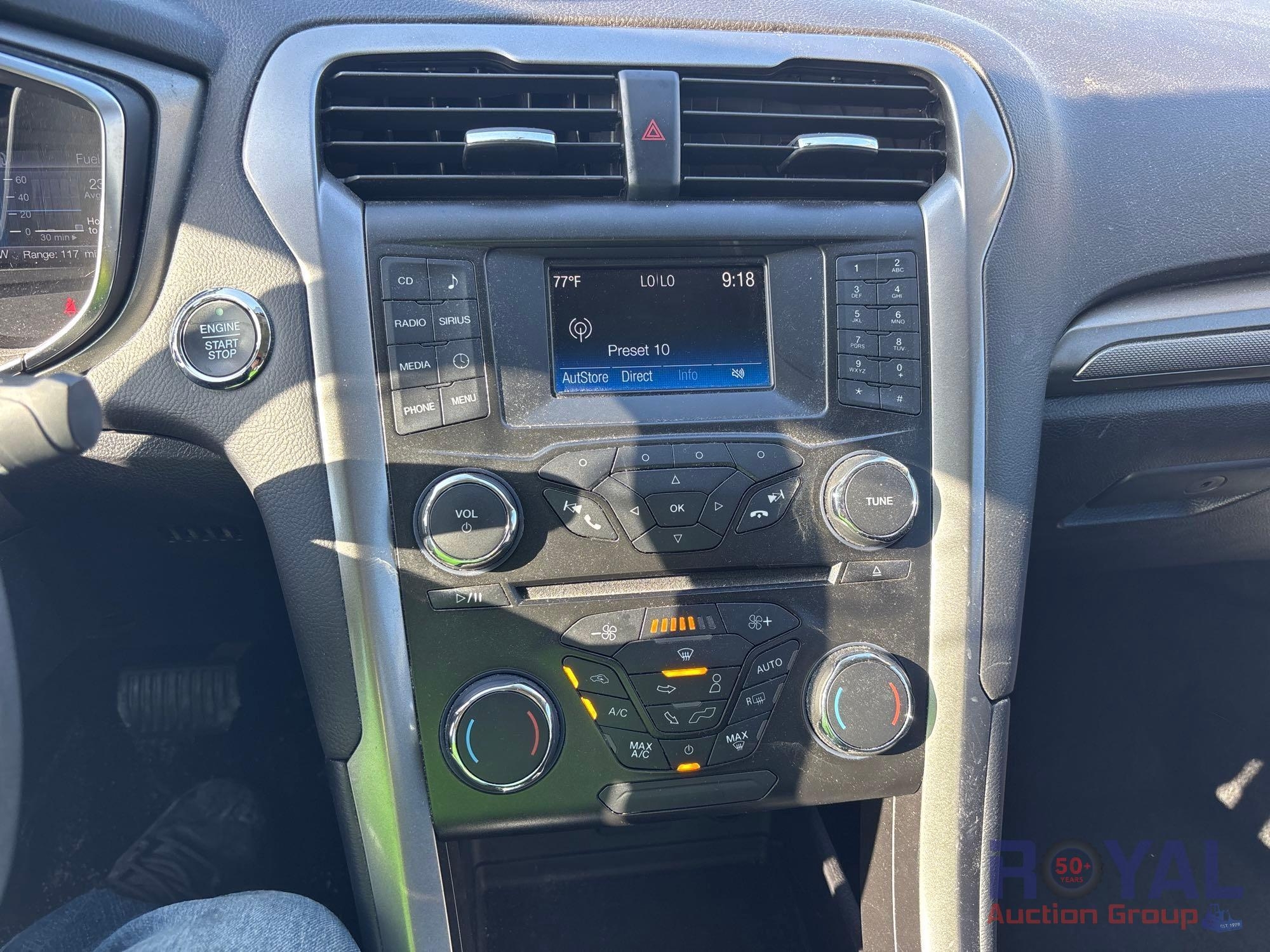City of Ft Lauderdale ,VIN:3FA6P0LU2JR220378, Odom reads: 65,390,miles. Powered by a 2.0L 4-cylinder, hybrid engine, automatic transmission. Equipped with: pwr windows, locks, mirrors, seat, dash screen, keyless ignition, bluetooth connectivity, steering wheel phone, cruise dash, and media controls, am/fm stereo with cd player, digital infotainment system,A/C/heat and 12v charger. Runs and drives. Limited function check completed at check in.