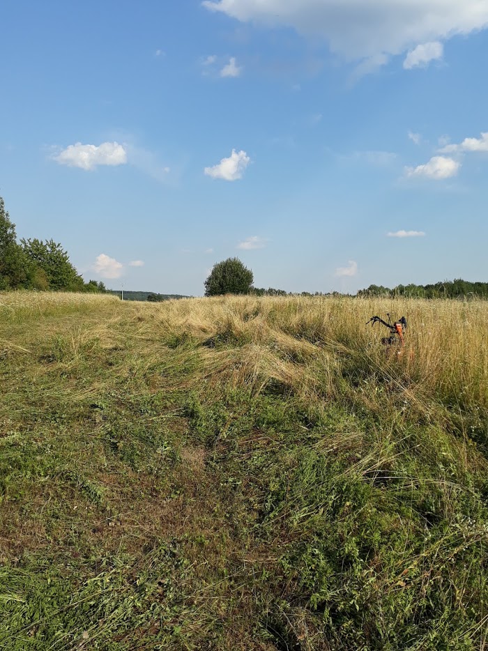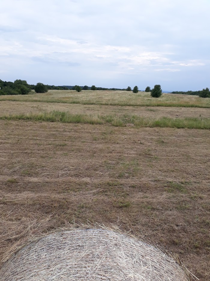 We have all of our first cutting "cut" and almost all of it baled.  Anyway, I cut my little food plots a few days ago and raked them this morning,.