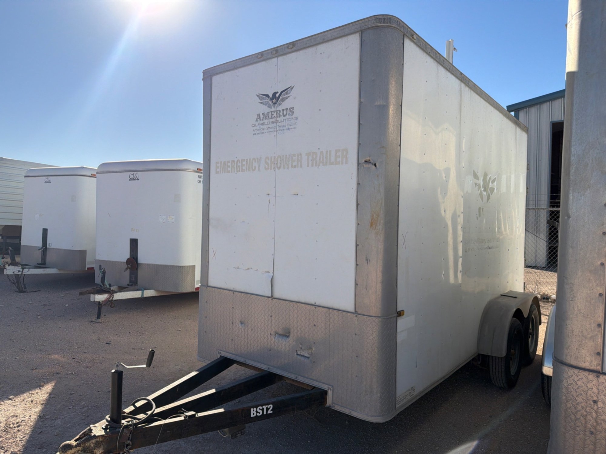 (Odessa. TX) 2018 ROCK SOLID CARGO 14 T/A SHOWER TRAILER 12' ENCLOSED TRAILER. TANDEM AXLE. SINGLE WHEEL. 425 GALLON WATER TANK. SHOWER AND EYE WASH STATION. ITEM# 22511