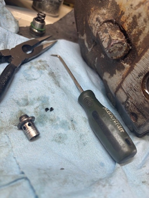 Today, I started removing drive motor plugs as per TC-Service-manual and found debris which appears to be hose related in the relief valve hole. I think it was blocking the small 'HOLE' in the middle leaving the relief valve opened.