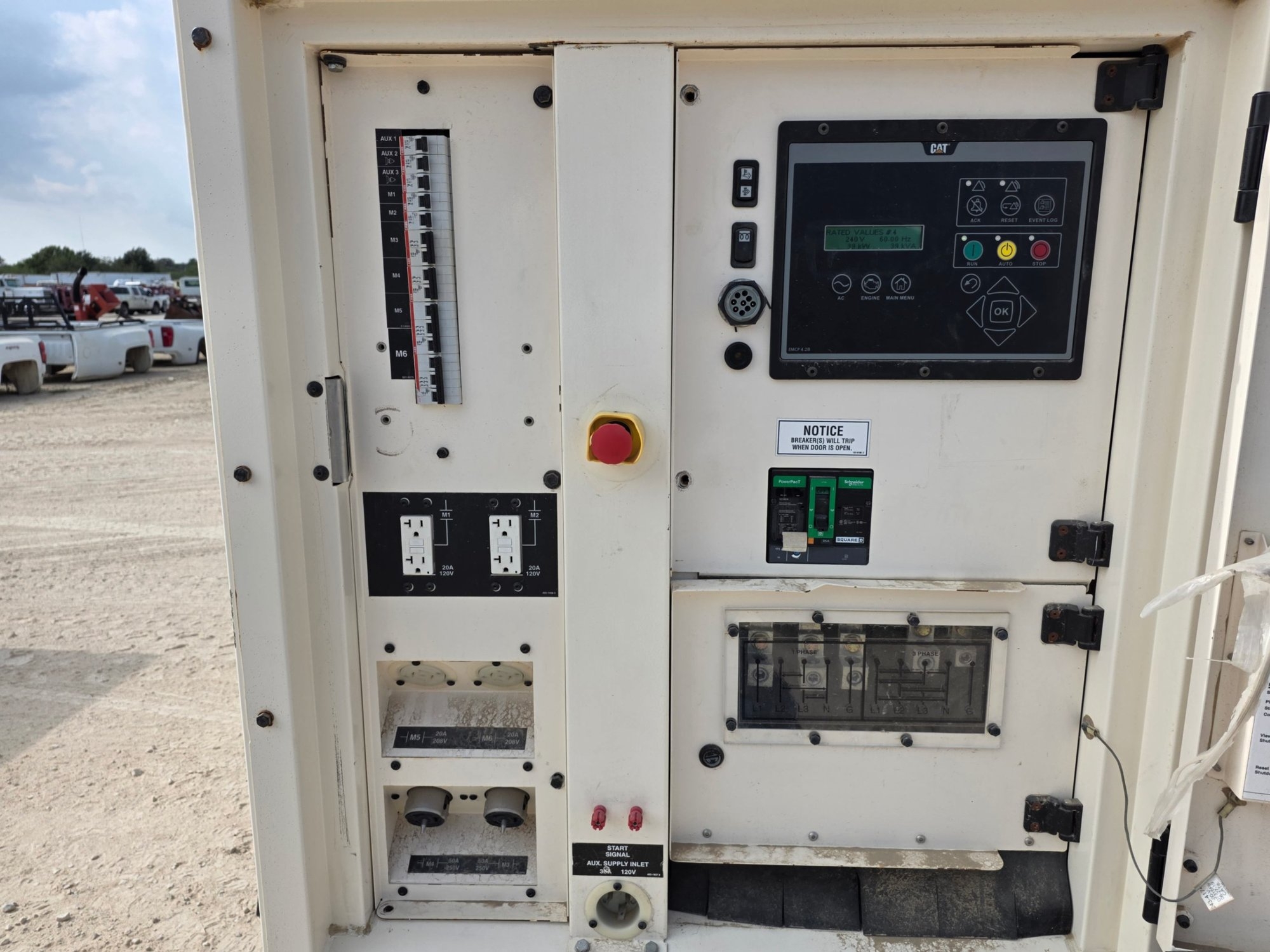 (Atascosa. TX) 2019 CATERPILLAR XQ60 GENERATOR GVW: 4,000LBS. (4K AXLE), ENGINE: CATERPILLAR 2.2 LITER/37HP, (STARTS), (7,468HRS), CATERPILLAR LC1514P GEN END, 3 PHASE, 60 HZ, 59KW, 120/240/480 VOLT, 2 IN HITCH, HYD BRAKES, 205/75R15. ITEM# 20396