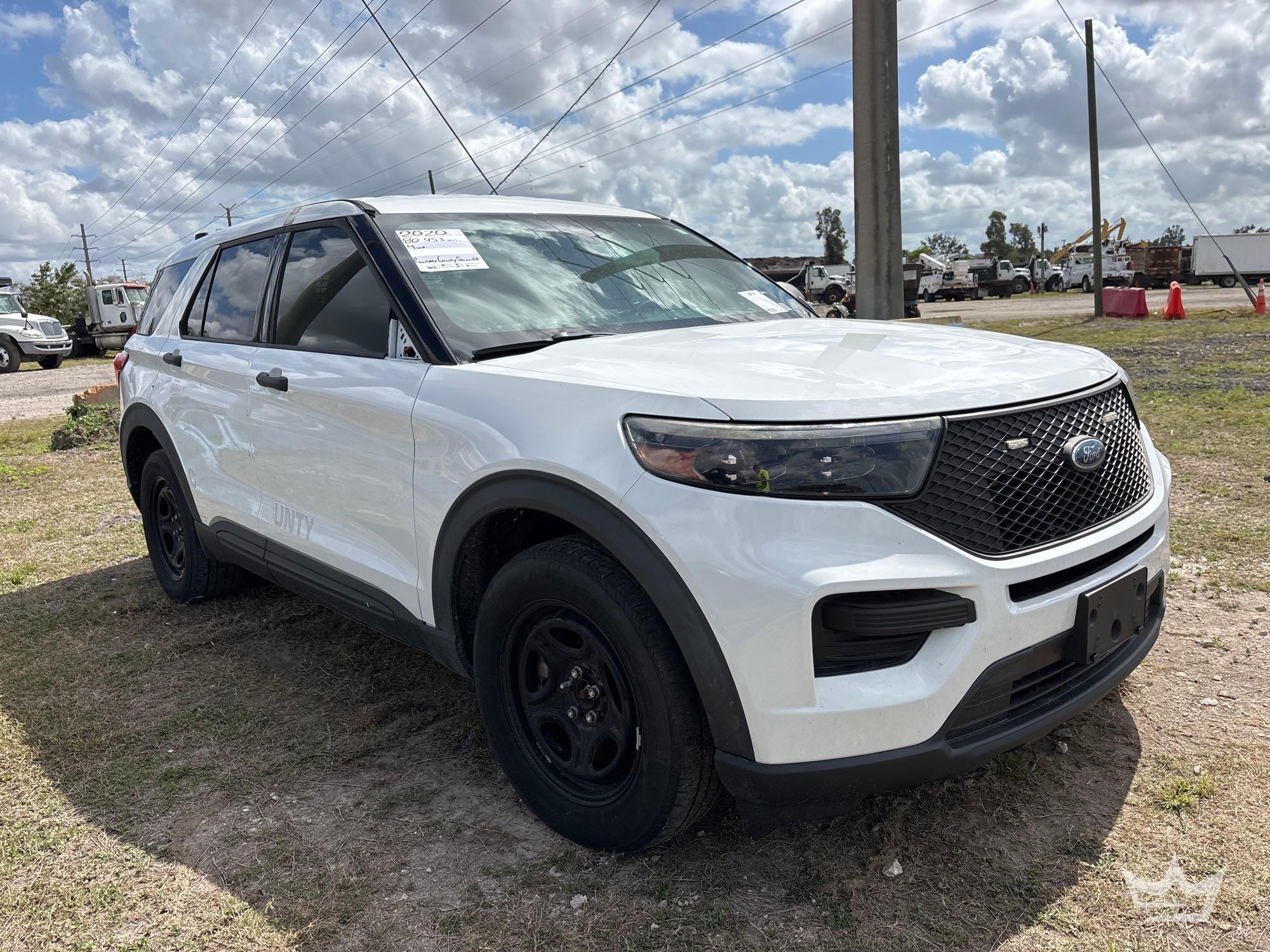 Location: Fort Myers, FL (Charlotte County Sheriff) VIN:1FM5K8AW4LGB07576. Odom reads: 80,453 miles. Powered by a 3.3L V6 gas engine with an automatic transmission. Equipped with: all wheel drive/AWD, pwr, locks, and seat, hands-free phone connectivity, steering wheel: cruise, dash screen, media, and phone controls, am/fm stereo, digital infotainment system, dual climate controls, Havis police center console, Pro-gard rear transport seating tow package, auxiliary spotlight and 12v charger. Powers up, No start. Title Branded Police,