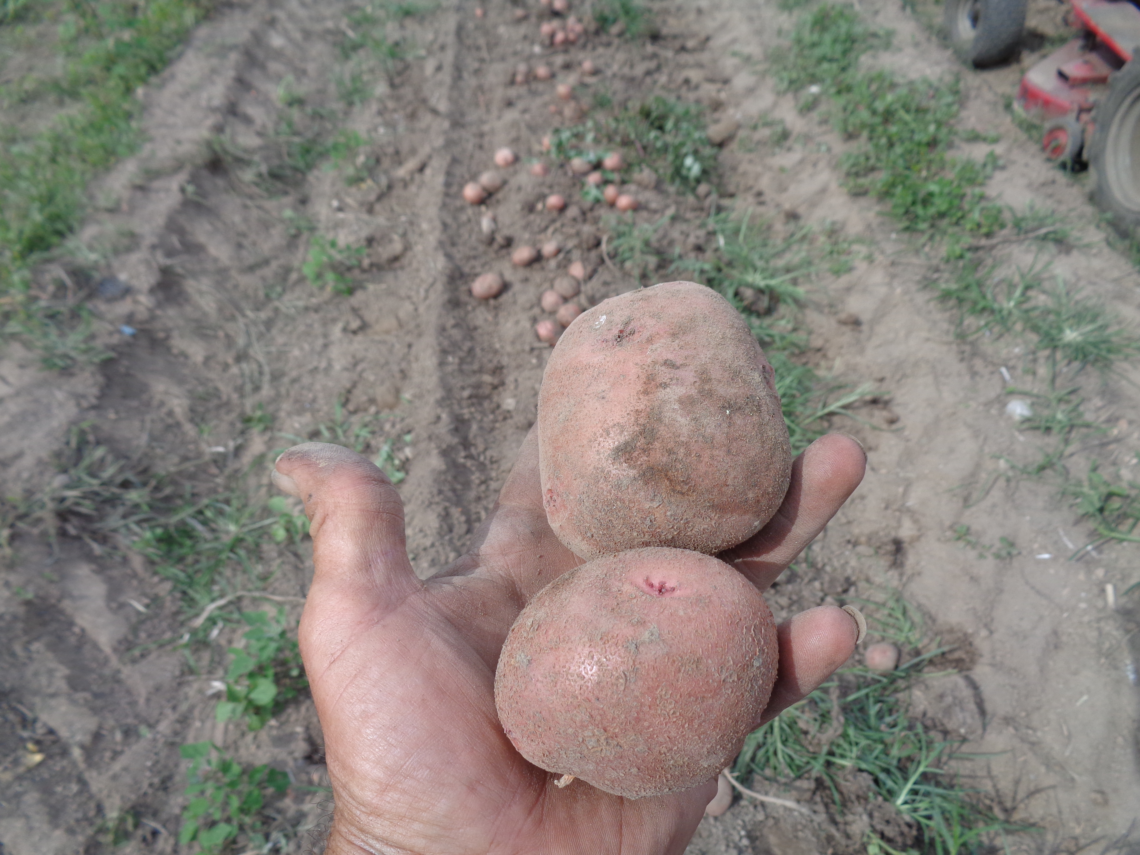 I got of the 3 rows of potatoes I planted dug yesterday, will do the other 2 today. I had 2 rows of Yukon Gold, and 3 rows of Chieftain Reds. The Reds produced better than the yellows, but can't complain for the weather we had this summer. Quite a dry spell, and temps in the 90's for a lot of July had to stress all plants. Rows were approx. 80' long. Yellows averaged 60 lbs. perrow, Reds 80 lbs per row. I was amazed there were no problems with potato bugs this year.
