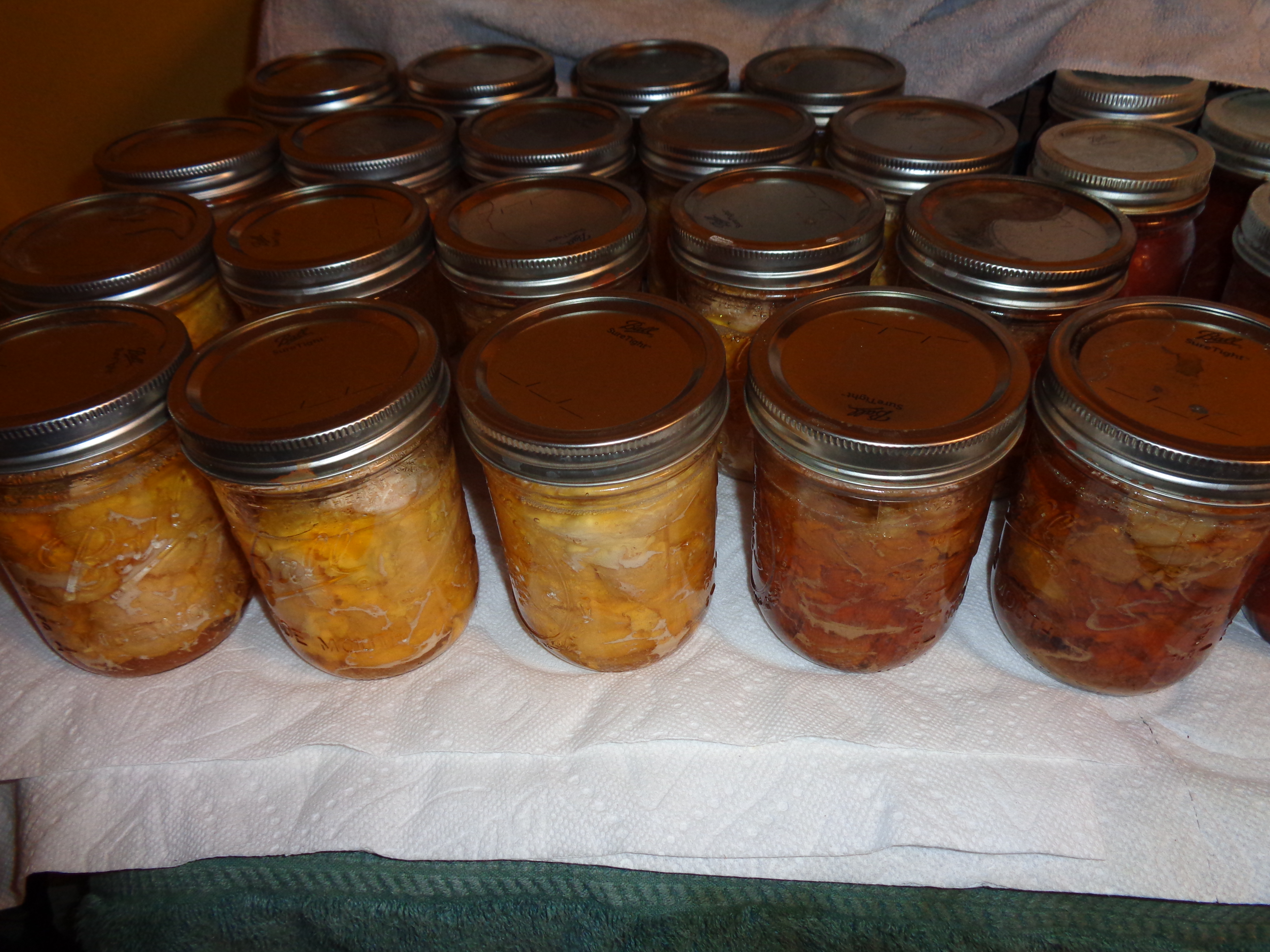 we did tomato sauce and peaches i think? high acid stuff, we add citric acid to our tomatos. we also pressure can. just ordered a new bigpressure vessel as ours is too small for the volumes we do now.