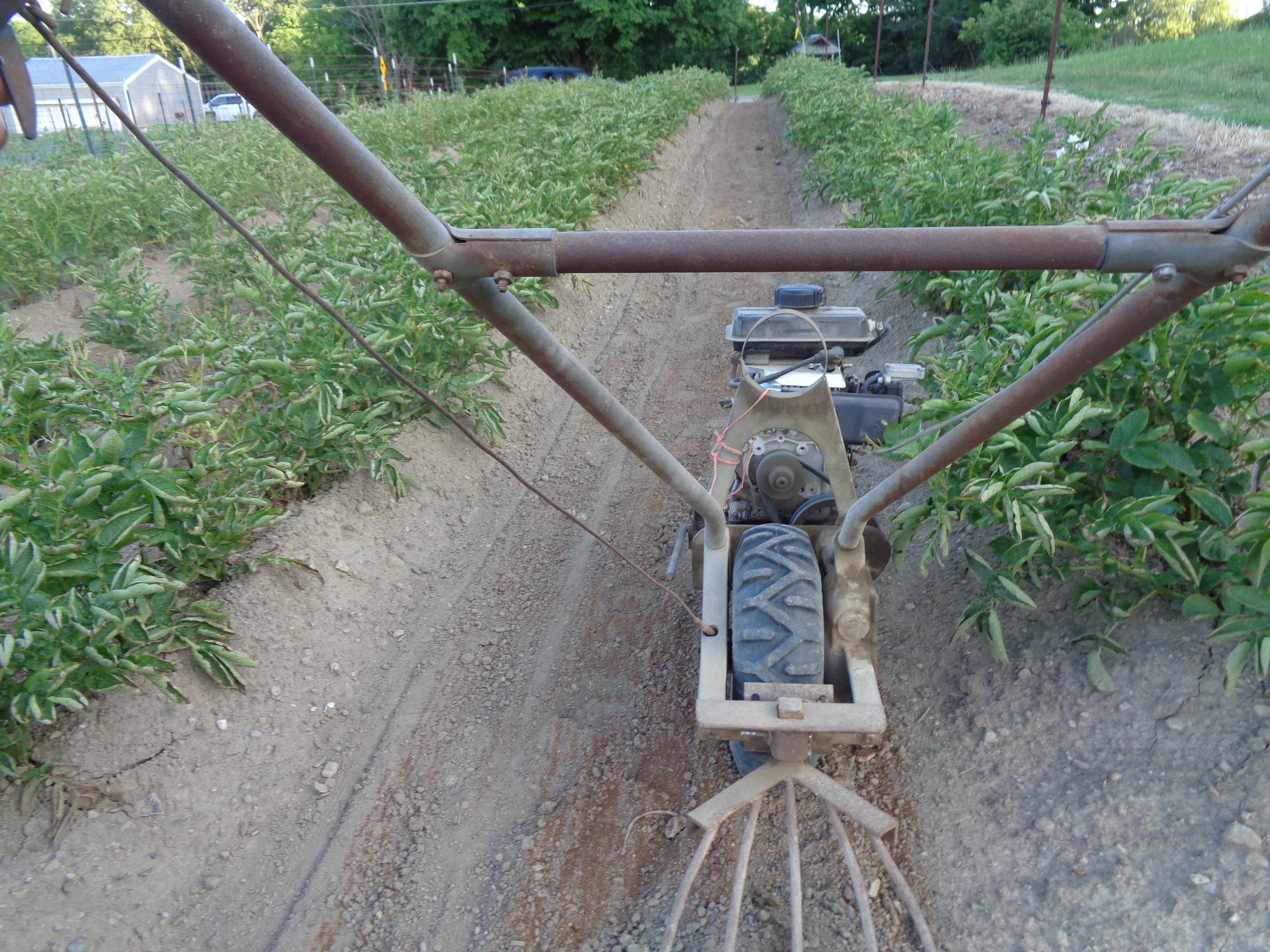 A few tatoes scratched out to see what if anything was under the plants