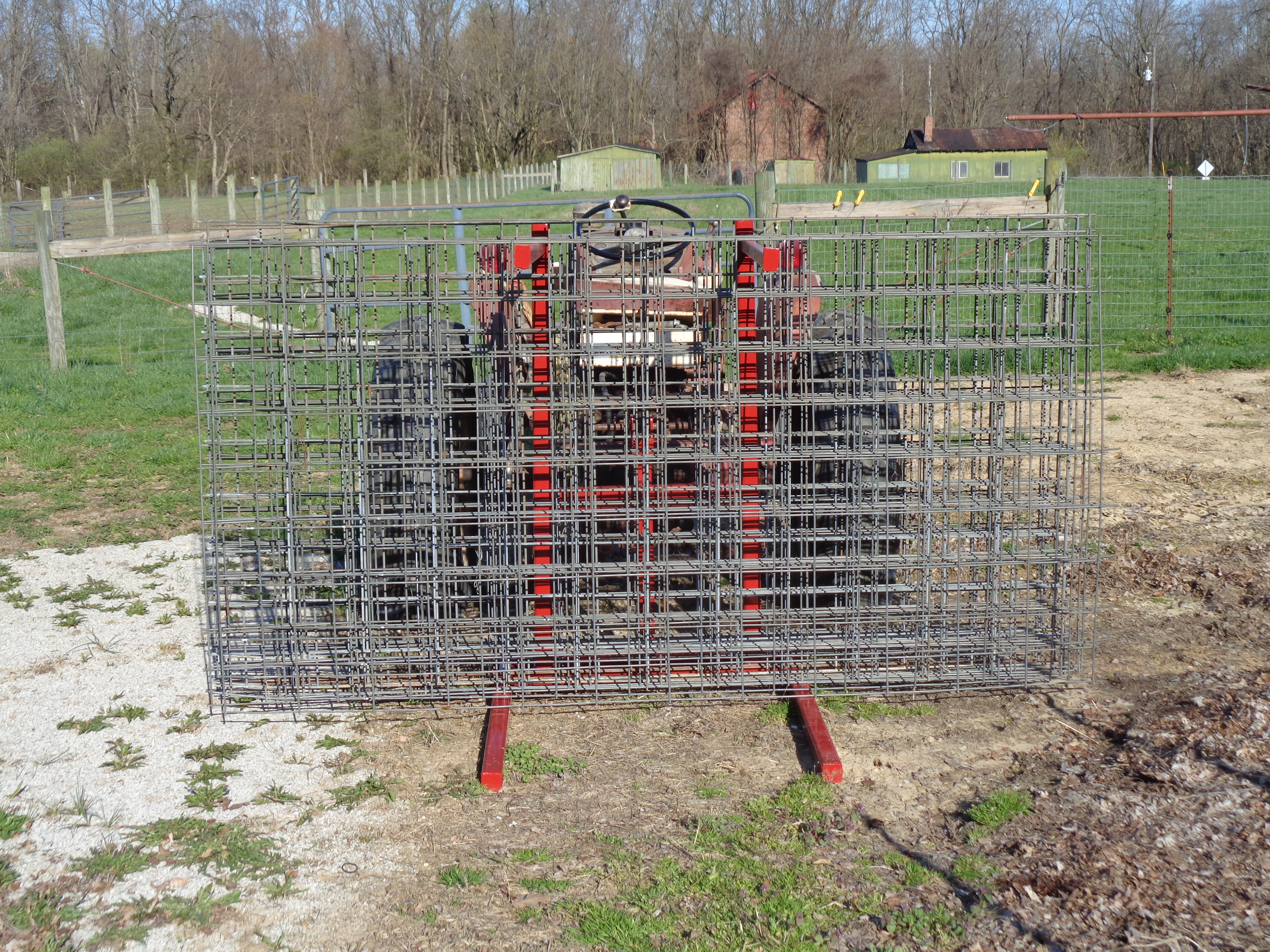 Also below are a couple pics of the first shop build this winter after the holidays. I use cattle panels cut in half, and T-posts for trellis for certain tomatoes that are highly productive, and break down even the heavy gauge cages, plus a Florida weave, every 4-5 cages. Storing/moving them has always been the biggest hassle with them. I've ran several designs through my mind in the past, and decided this would be the best for my situation. I can store them, and carry them where ever I need them with this special carry-all I made. I've got 36 panels, and there are 18 of them on here in the pic, so all will fit nicely, and still room for more. Using the Fast Hitch, to 3 pt. adapter on the 240 Utility makes for easy hooking up, and unhooking. I can carry them midway in the garden, saving having to carry them the full length. Any more, carrying half way, beats climbing on and off the tractor several times,with my old knees. I don't know if anyone else uses these, but I'm seeing this so far as a real time saver,and storing them out of the way.