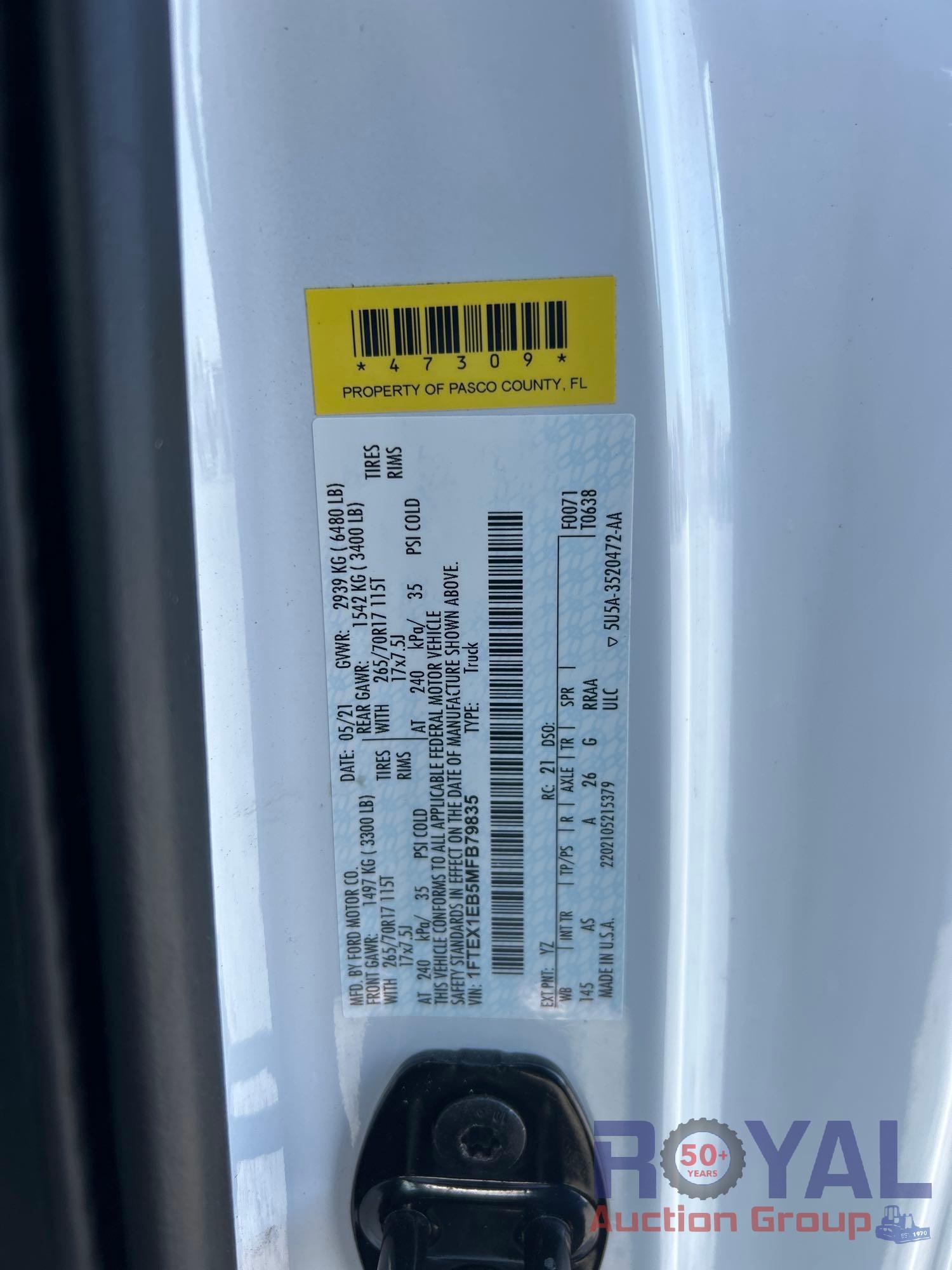 Year: 2021 Make: Ford Model: F-150 Vehicle Type: Pickup Truck Mileage: 22,825 Plate: Body Type: 4 Door Cab; Super Cab; Styleside Trim Level: XL; Limited; Platinum; XLT; Lariat; King Ranch Drive Line: 4WD Engine Type: V6, 3.3L; FFV Fuel Type: Gasoline/E85 Horsepower: Transmission: VIN #: 1ftex1eb5mfb79835 Features and Notes: