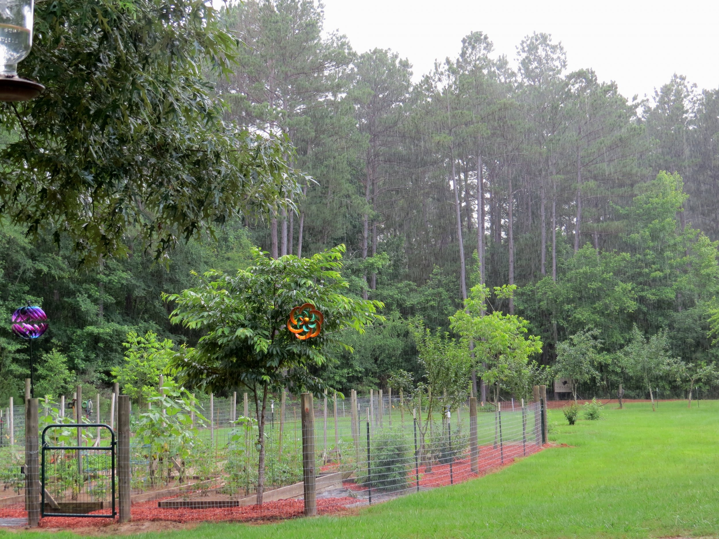 This was last year during a rain storm. I was trying to get a picture of the rain, but I like how the garden looks too!