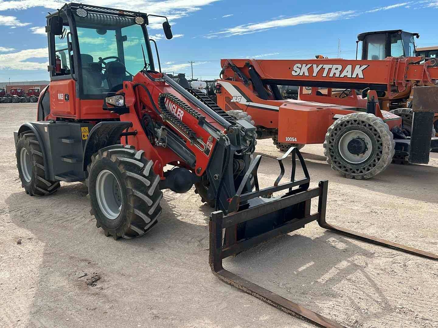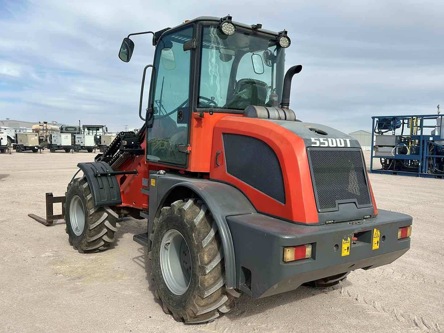(Odessa. TX) 2023 WRANGLER 5500T ARTICULATED WHEEL LOADER VIN/SN: AM502576030001, ENGINE STARTS:YES, 5500 LIFT CAPACITY. 16 LIFT HEIGHT. STARTS AND RUNS. CAB A/C. BUSTED PASSENGER WINDSHIELD. OFF-ROAD TIRES. 4 FORKS. ITEM# 20292
