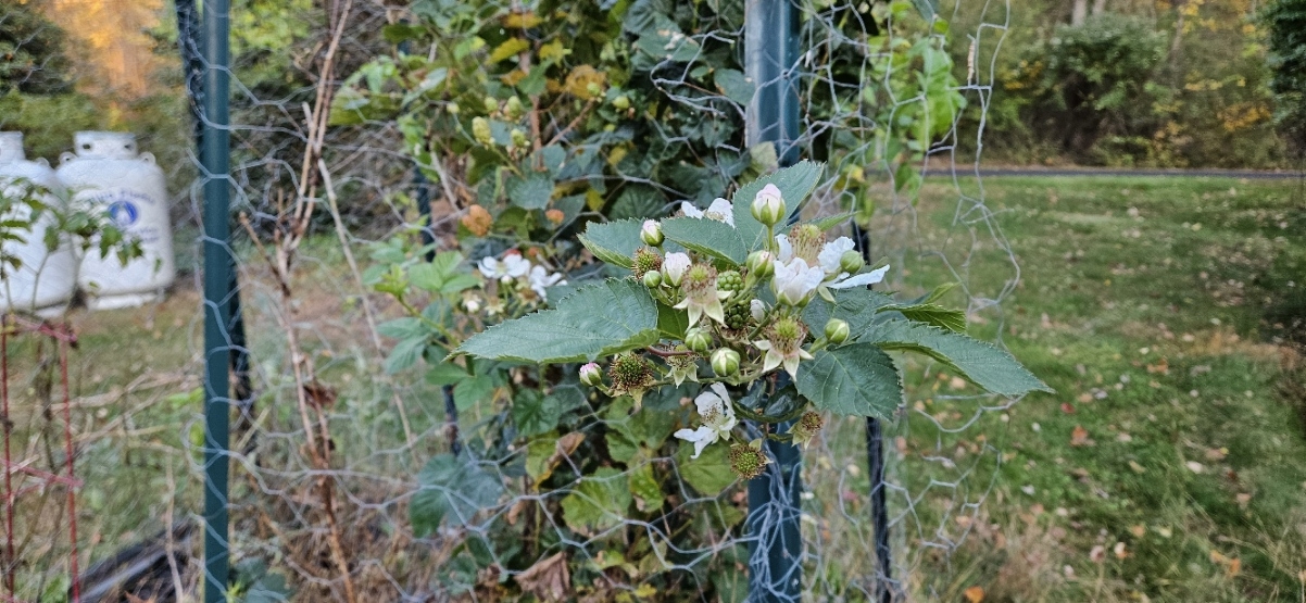 I picked a few Fall Gold raspberries in our yard yesterday while burning tax papers. Saw some wild strawberries in the grass as well.