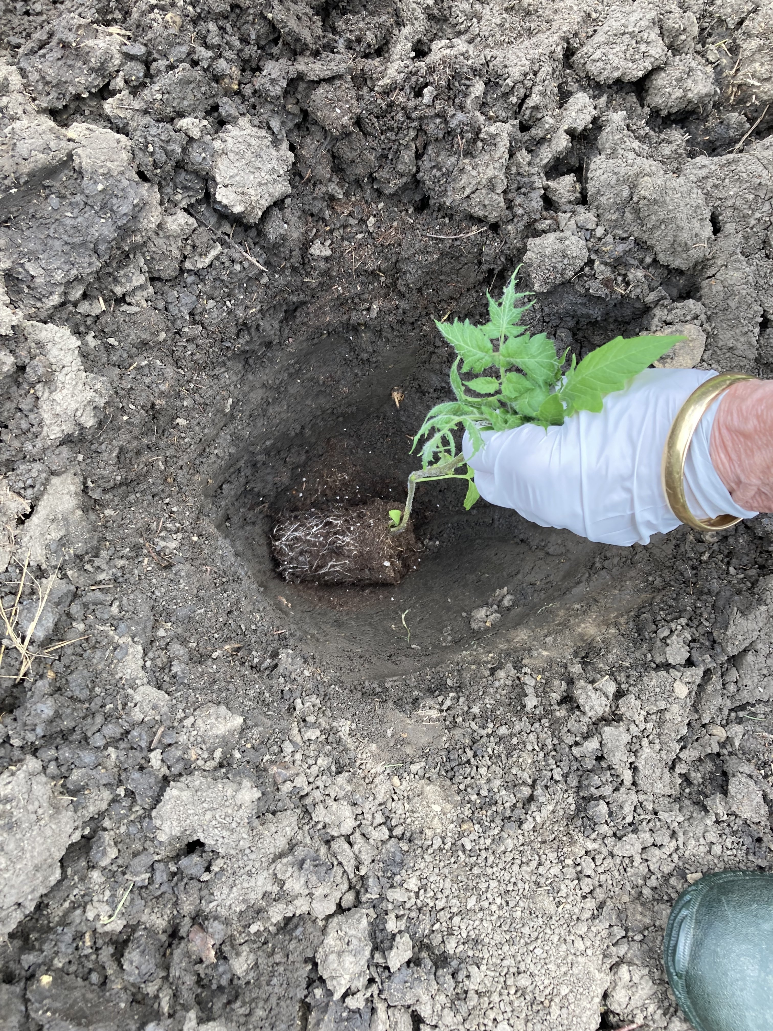 Planted some tomatoes today. I do it a little different and the way I learned when I lived in Maine and had a short growing season. This works for me.