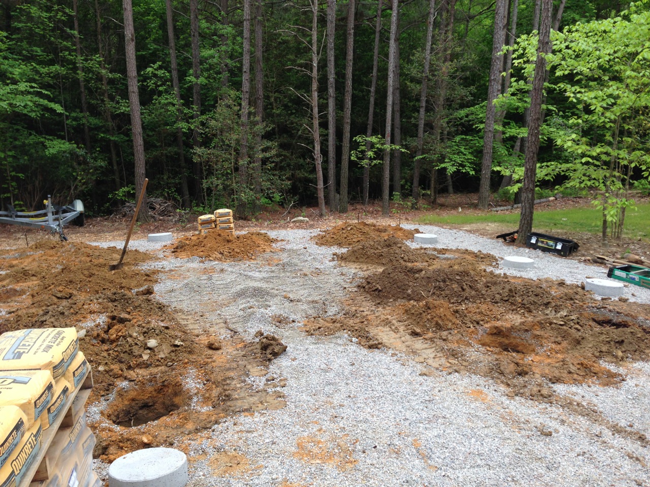 Have one last shipment coming, of concrete mix (108 sacks) to fill post holes. Deferred that to Thursday afternoon hoping the rain has stopped by then.