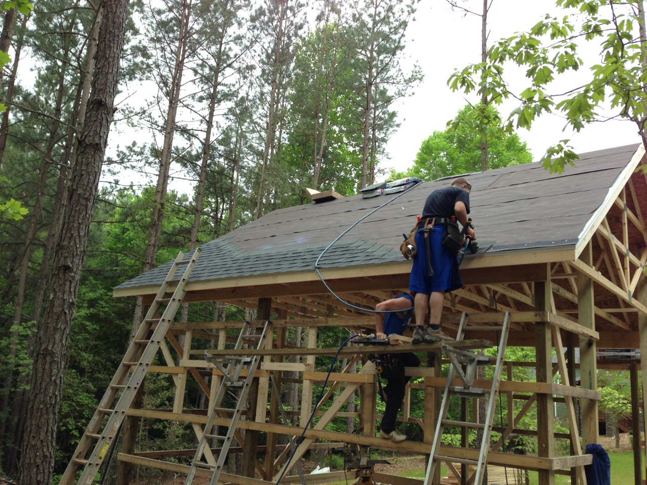 Some pictures from Day 2, where roofing was completed, and siding/trim started (about 70% done).