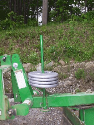 I run a rear blade all winter with the 47" blower and often during the summer with the 410 FEL. If your rear blade is like mine (has a 1" rod with foot as storage foot), try sliding 25# weights on the rod. I add 100# but could easily add 200#. At that distance from the 3PH, it is sufficient ballast to offset the 410's bucket full of pretty much whatever you can put in it. Just my cheap solution. Also gives pretty good down pressure on the RB, when needed.