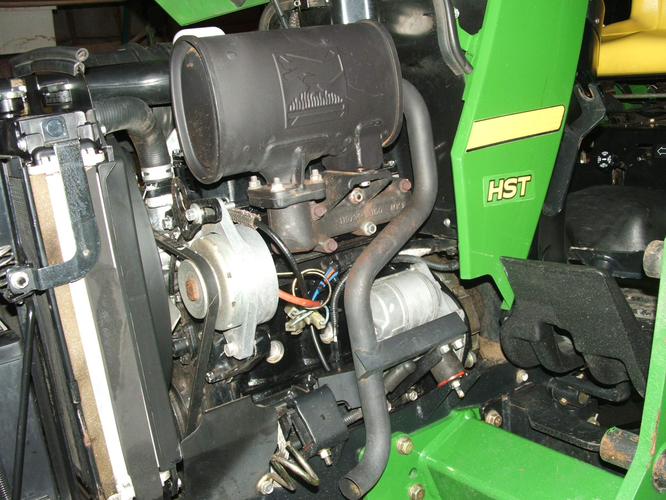 It's finally home! So they did put a ''short block'' in it, new water pump, glow plugs, and had the head and injectors check. Had it on the dyno for 45 min. tested at 21 pto hp, give or take a few since it is not completely accurate for small engine. They had the tech guy from JD (he was passing through) to look at it and he couldn't figure out what could've cause it. I guess will never find out. So, now its home, got the cab and the blower on and it is working great. I never realize that I was lacking power, but now, I do see a difference and the engine noise is also different. This is going to be a great Christmas after all. :drink: Pics from my dealer and the engine. Thanks everyone and Merry Christmas! Henri