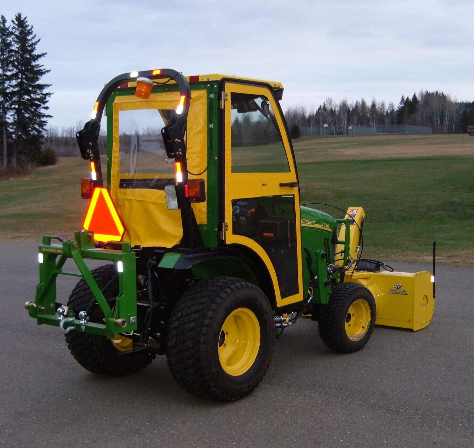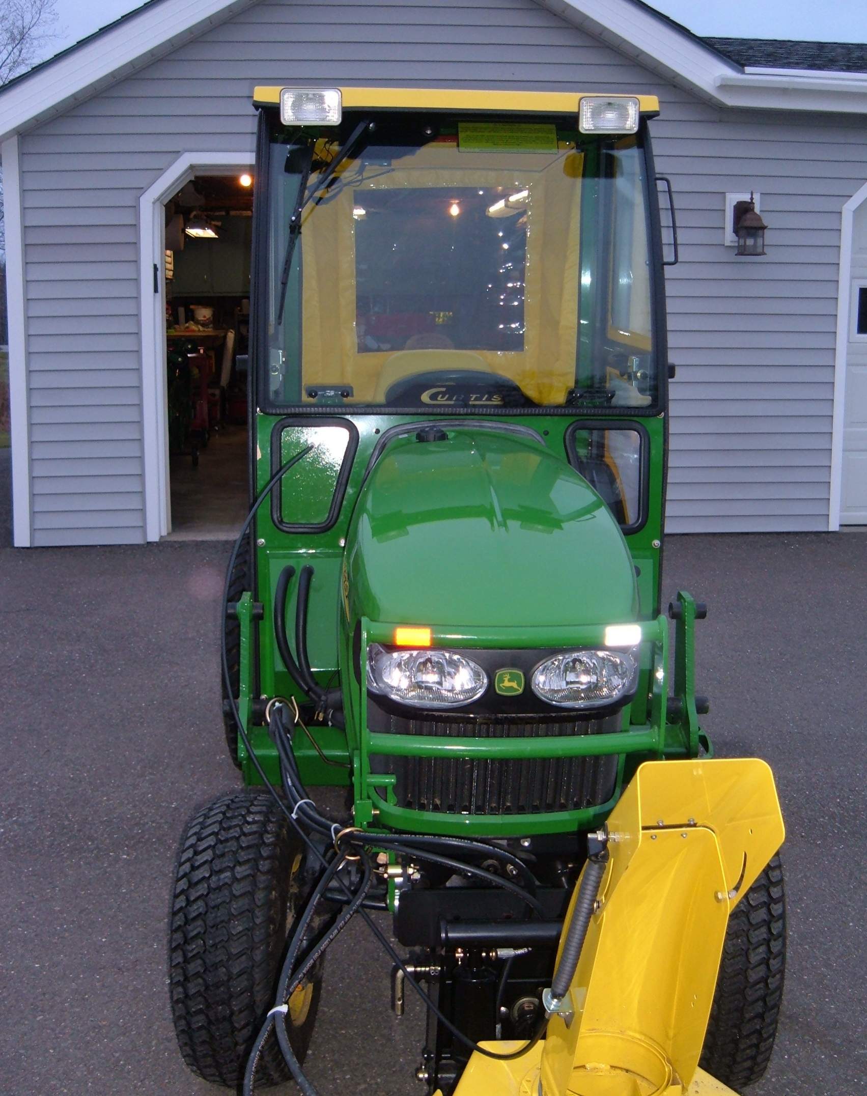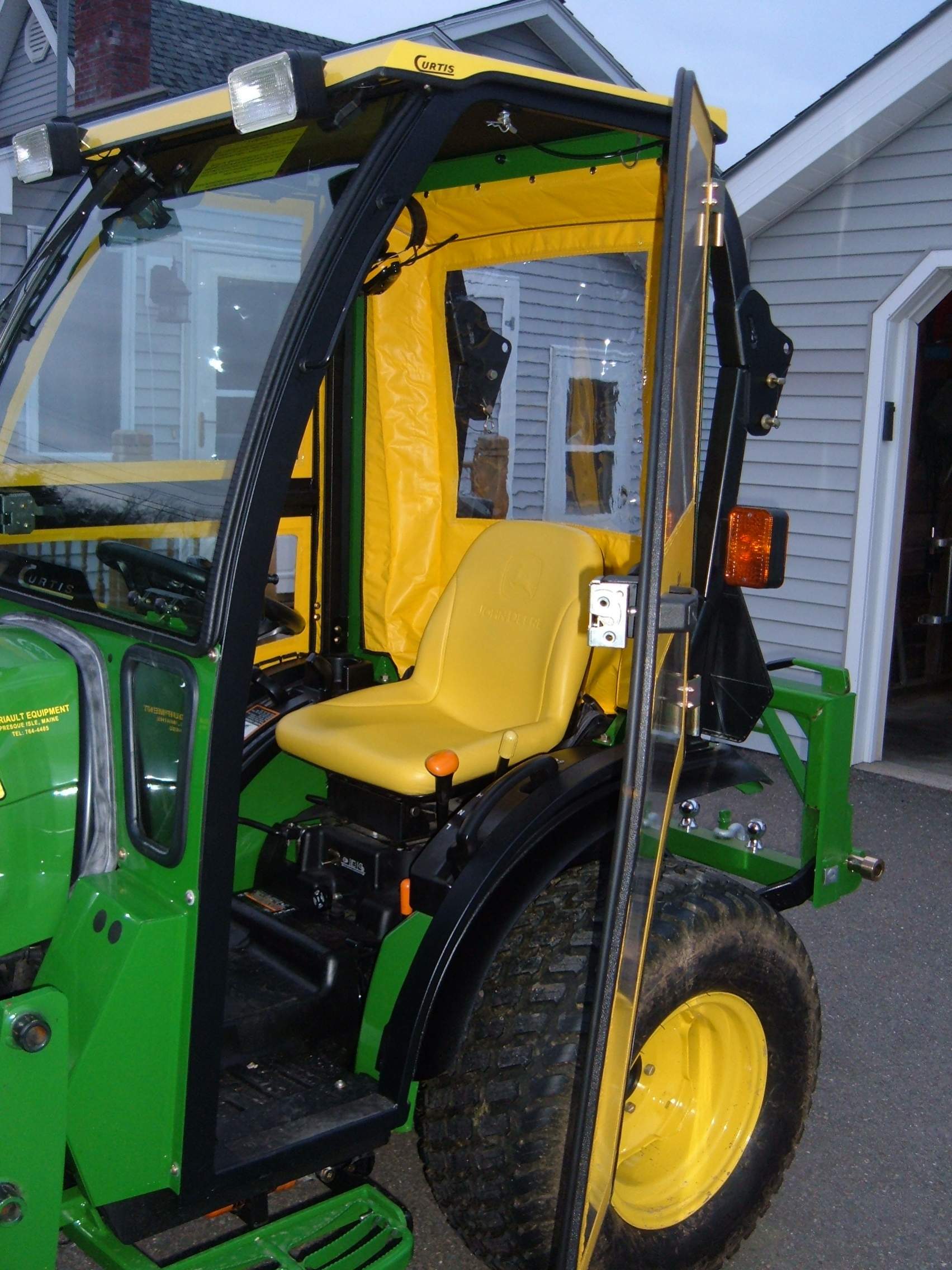 Well I just came in from outside and took some pictures of my Curtis cab, I also have some pictures of my step that I fabricated, which can be quickly removed if need be. Notice on these pictures that I have lowered my ROPS bar, so now I can get in and out of my garage without having to lower and raise it. I also have a magnetic mount quad strobe this is wired with an external waterproof connector. If I want to remove my strobe in the summer, and use the power supply for other items such as a rear tank sprayer etc... I am all set to go. Hope this helps.:D