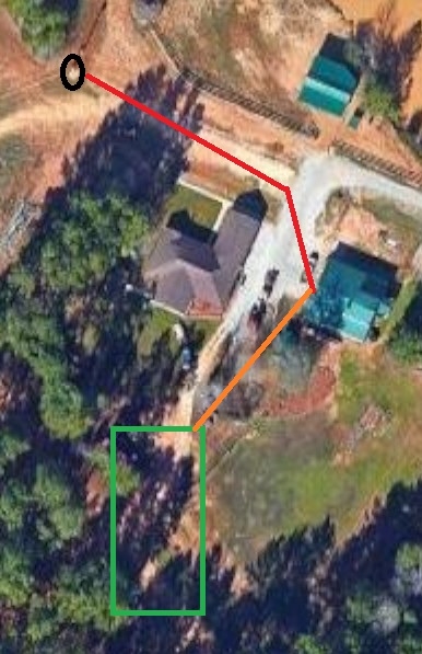 The orange line is where I plan to bury the line to my Shop. The green box is where I will build my Shop.
