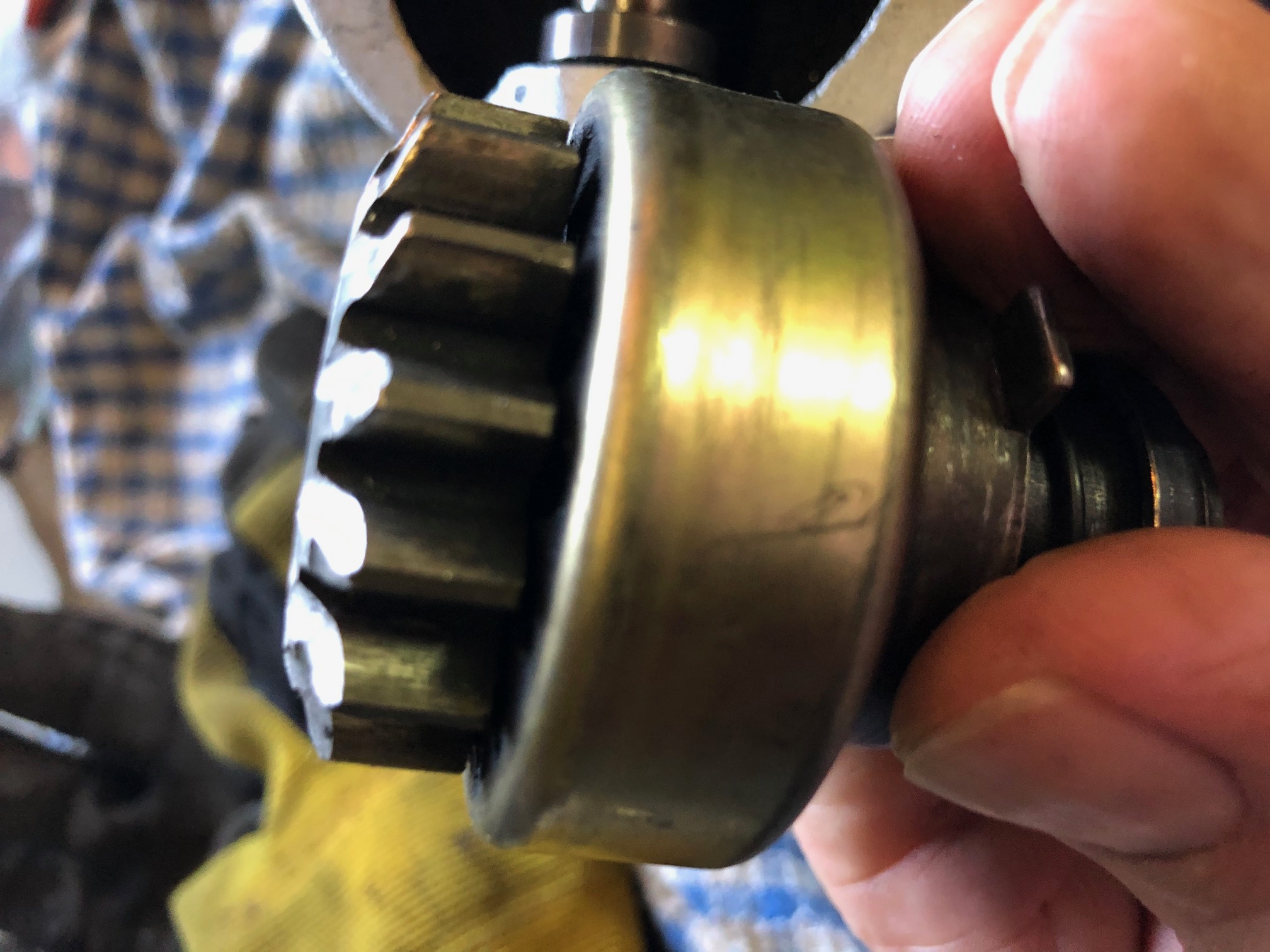 Bench ran the Starter- Using booster cables and a short jumper for the solenoid. The gear went to the end most of the time but not always. One of the pictures shows it in motion not reaching the stopper on the shaft. I'm thinking this is the problem, at least in part. Did it about 50 times, it going to the end was random but I'd say 1 in 5 or 6 times it didn't.