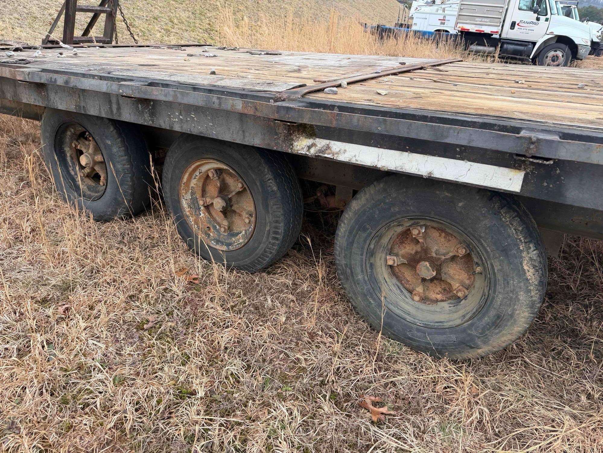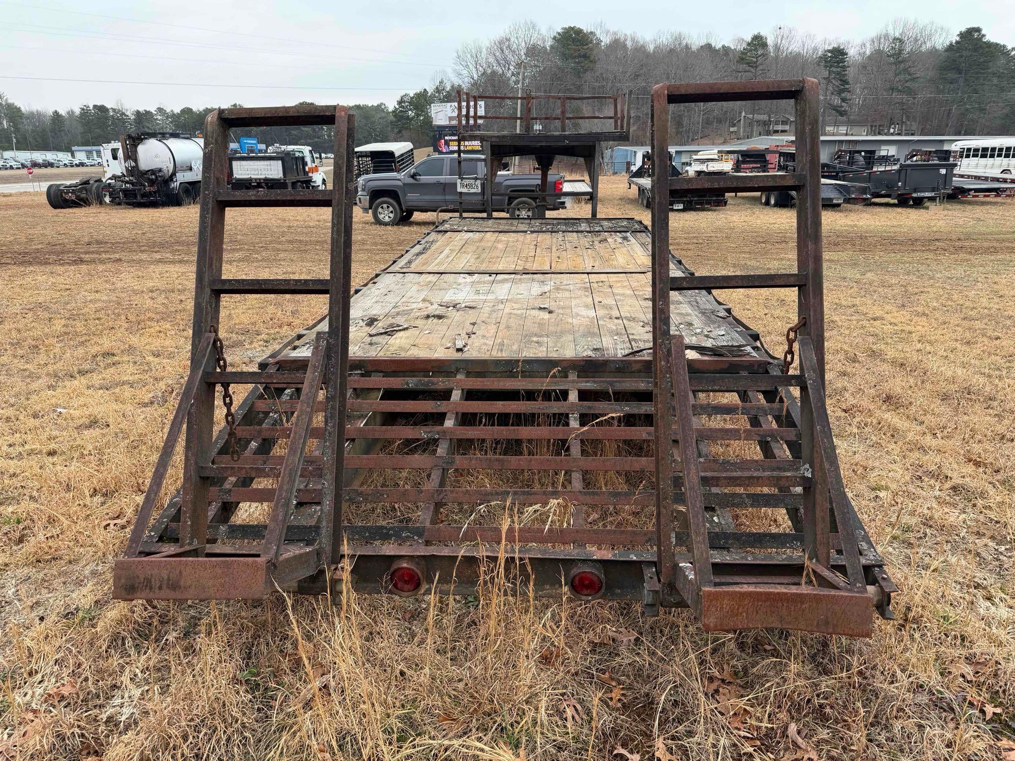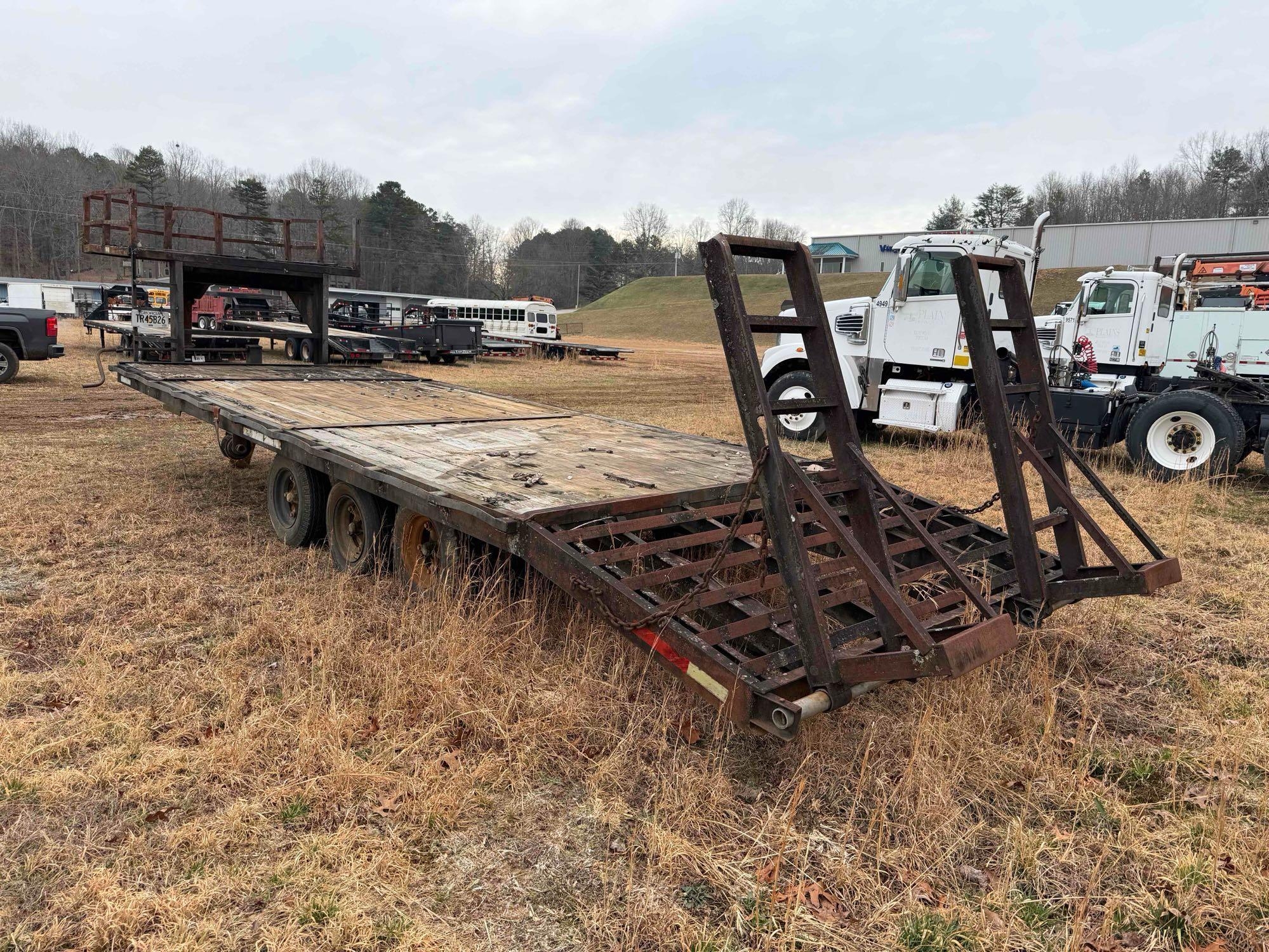 Located at lot in Blairsville,GA - 20ft Deck - 4ft Dove Tail - Tri axle - NO TITLE/INVOICE ONLY - Was pulled to location but not sure how far tires will make it