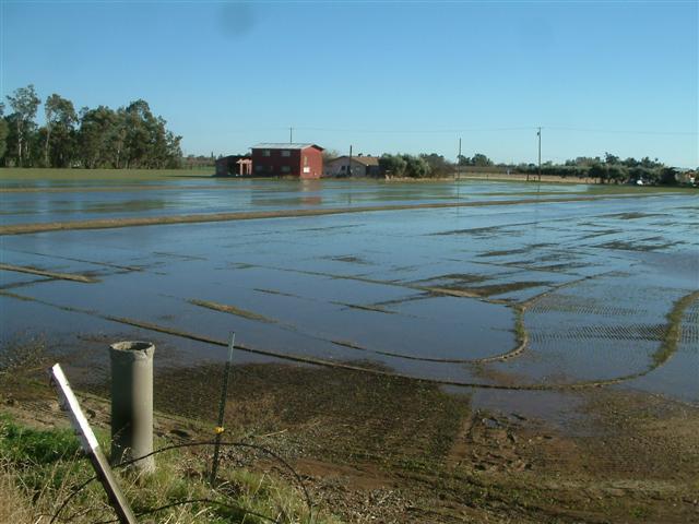 Surface irrigation requires a lot of preparation: rip the soil to 24" depth with a D7 Cat pulling a double shank subsoiler to break up the hardpan layer(s); laser level the field and slope it so the water flows correctly from one end to the other; plow checks into the field to keep the water flowing in one direction; install the main pipe and valves to tap the pipe at 10-20 ft intervals; then fertilize and plant.