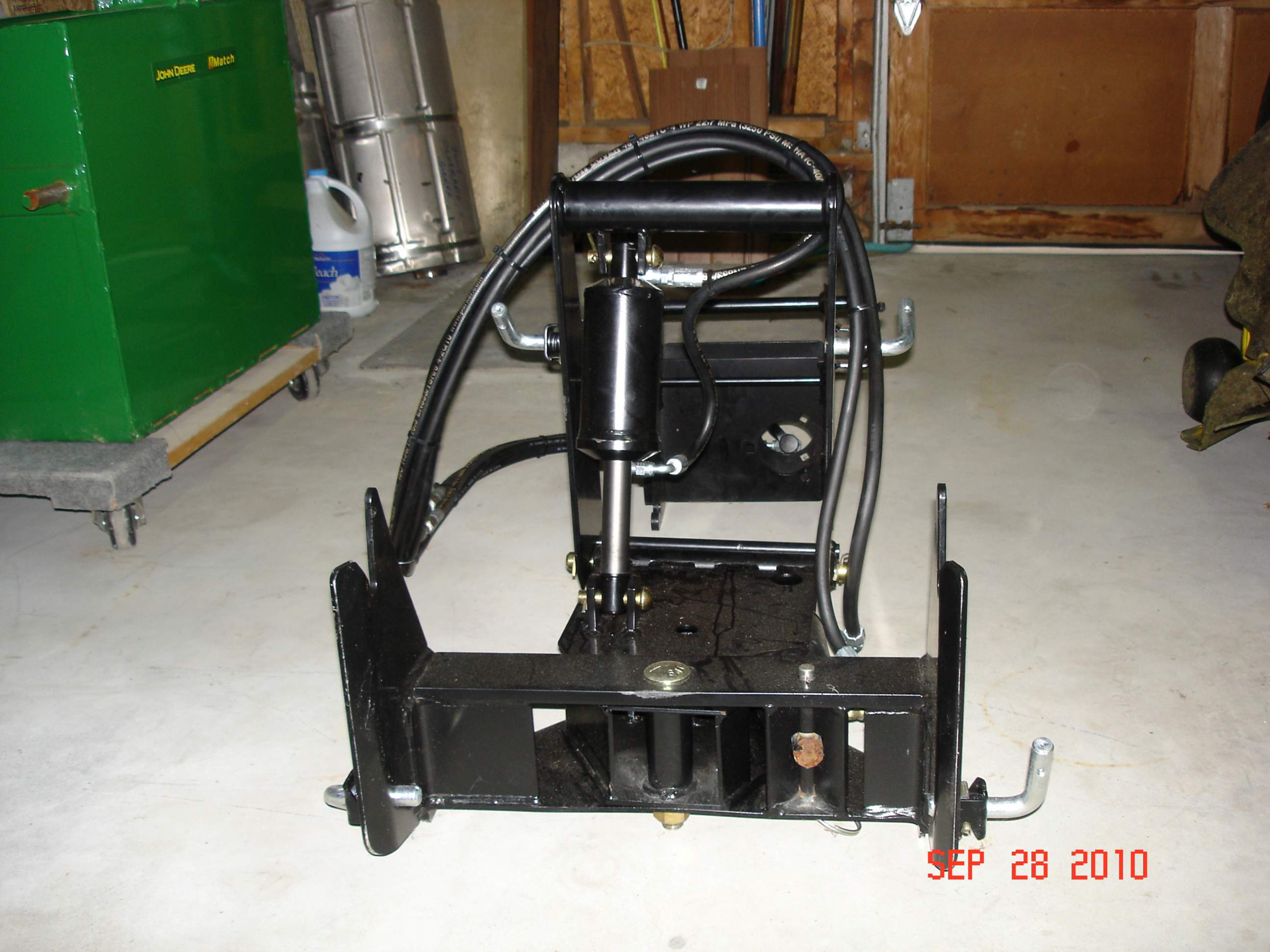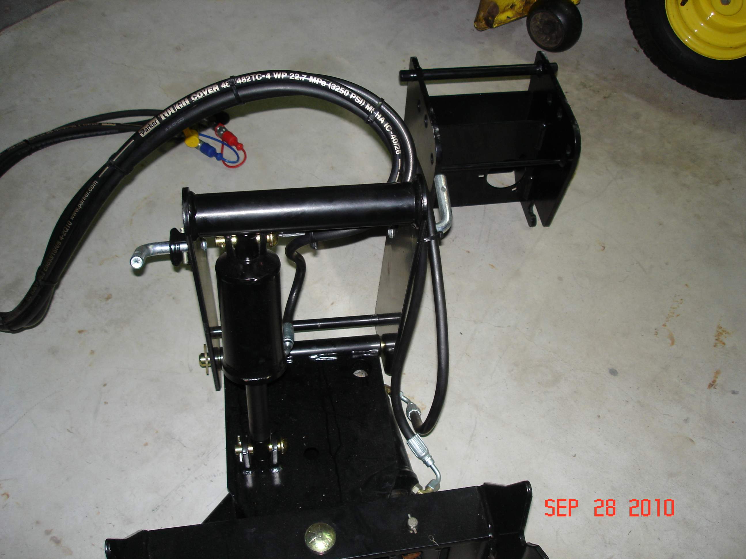 They have the 2 hydraulic lines for the up/down cylinder, routed between the frame of the hitch itself, and the 2 lines for the angle control cylinder on the outside of the hitch frame. (pic #1 shows the hydraulic lines the best) It would appear to me that it would be better to route all the lines on the inside of the hitch frame, so I called my dealer, and he looked up a picture of the unit, and apparently it does show the lines routed the same way as they are on mine.