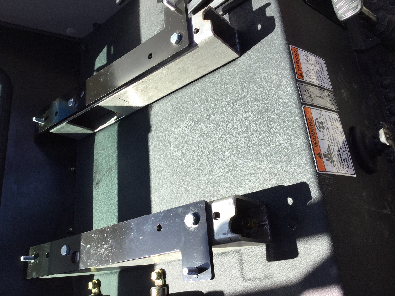 I have a 2655 as well and am big and tall. thanks to this thread i did the same thing. used 3 inch square tubing that a neighbor had in his scrap pile. the holes on the side are so you can get the bolt in at the rear. the notch on the top of the front is for the nut holding the bracket on the bottom of the seat to clear. i moved the top bracket back 1.5 inchs as well to give more room to the back. with it at 1.5 inches back, it still had a finger width of clearance at the very bottom of the seat that is closest to the back cab wall.