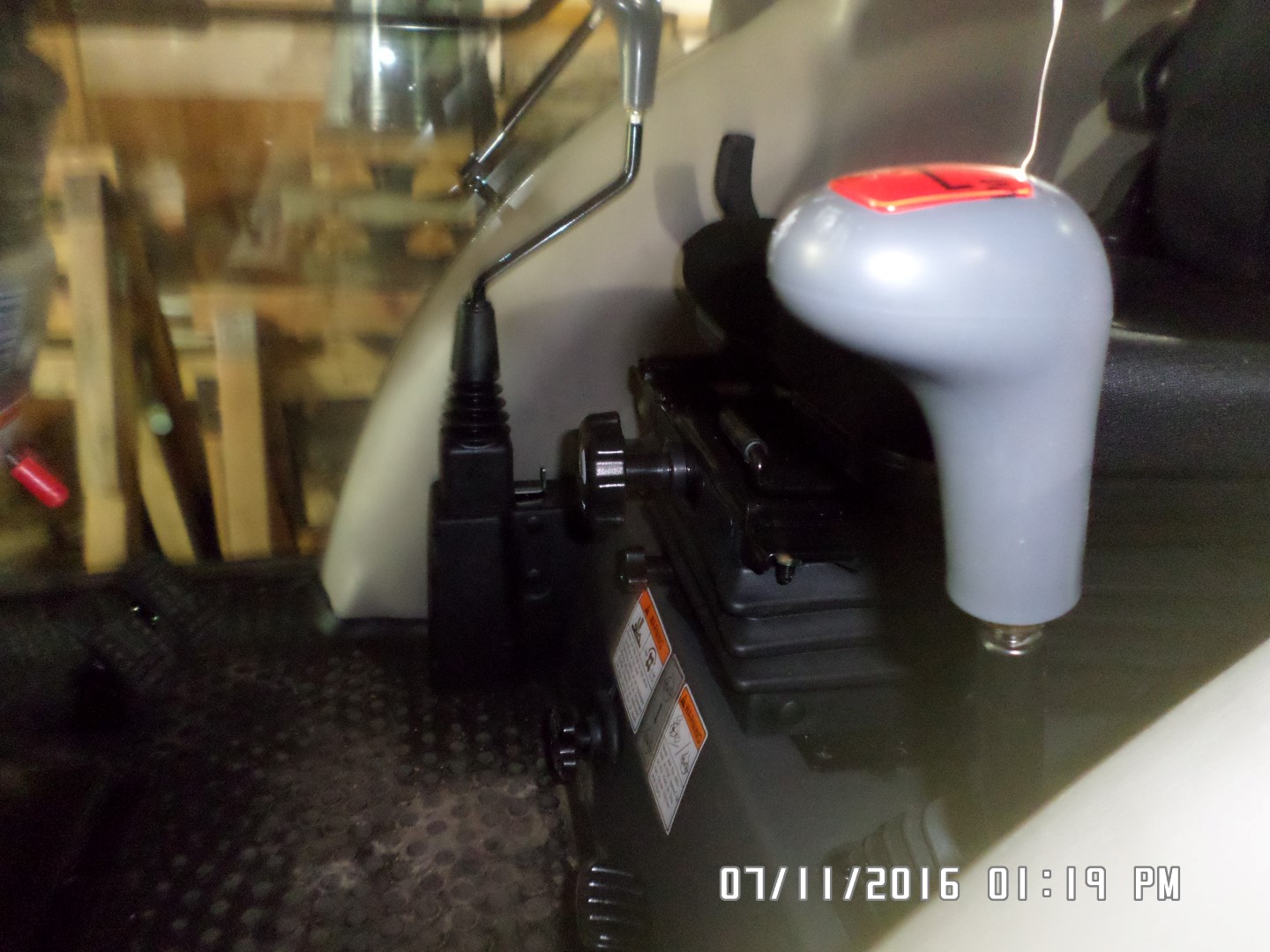 Raised my seat up today. Decided to go 3" up and back one set of holes [ 1 3/4" back, using an unused set of holes ] using some home made oak blocks. Now the seat height is more like my 5035 HST, and still have lots of head room. Going back allows me to get the seat adjustment knob out of my leg path entering/exiting the tractor. The blocks are just 13 1/2" pieces of 4 by 4, with one side shaved off to give me 3.5" x 3".. [ I are a profussional, do not try this at home ] For a 3" block height, I used 8mm X 100mm bolts.