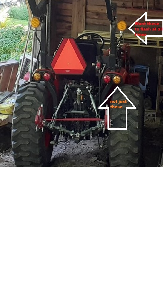I just have a question on my 2610 the lights that are mounted on the ROP work and flash with the hazard switch on the dash. Now I have owned the tractor for almost a year and never had a reason to operate the tractor after dark until the other day. While I have the headlamps on the lights on the ROP do not flash if I turn the headlamps off the start flashing again my question is do they all do this and if so is there a way to override it. I would like to have those lights flashing when the headlamps are on also for visibility reasons since my driveway is right at the crown of a knole and a higher flasher stand a chance of being seen from down the hill than the ones in the tail of the fenders