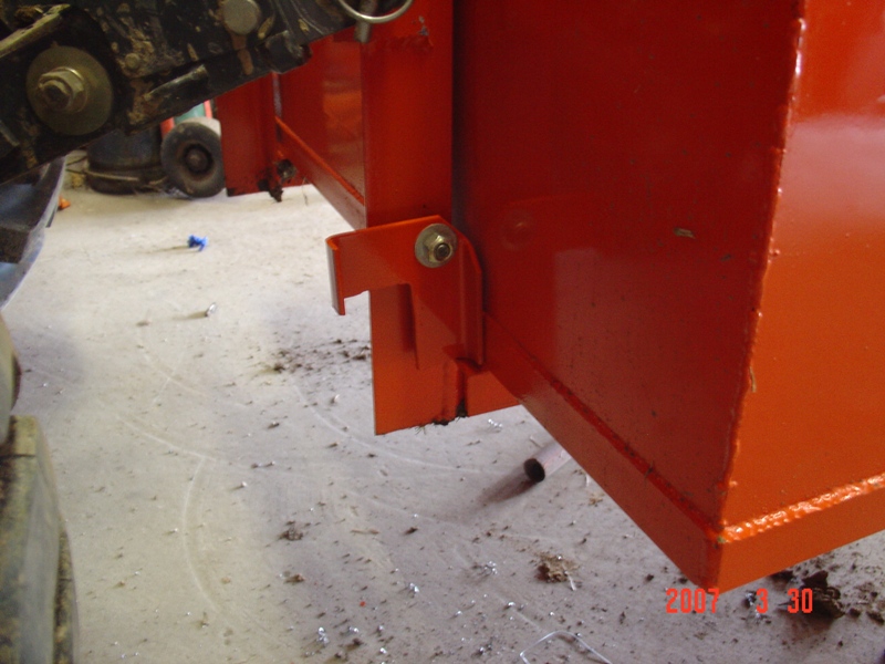 Good point. Should have added this picture. I totally forgot about a latch mechanism until I dumped a load of firewood. Necessity being the driving force ya know. So I went back in the shop and added this latch on one side. Then after I noticed the twist I was putting on the box with just one latch, I added a second on the other side. Ultimate goal is a hydraulic dump cylinder after I get rear remotes added to the tractor.