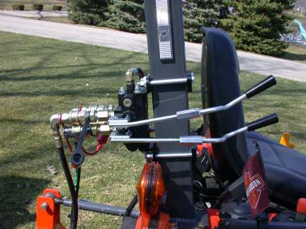 Rusty, I used Kubota valves and hooked into where the backhoe hyd lines are. I already had the rear remotes so eight extra feet of hose was a lot cheaper than the extra valve set up, it took a little getting use to but now it is no problem.