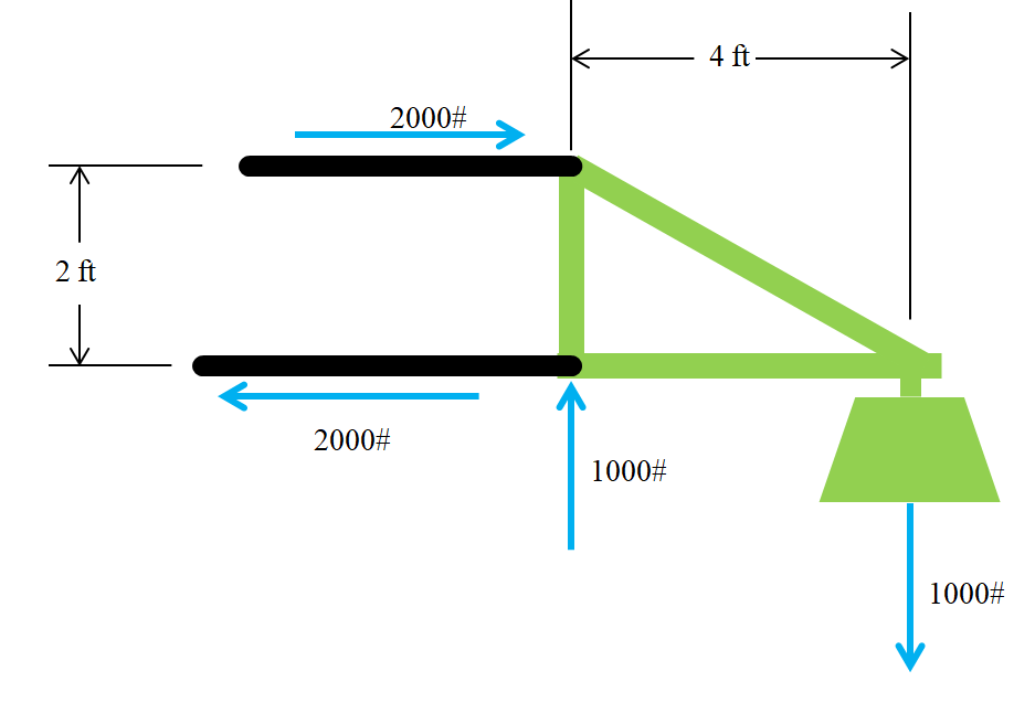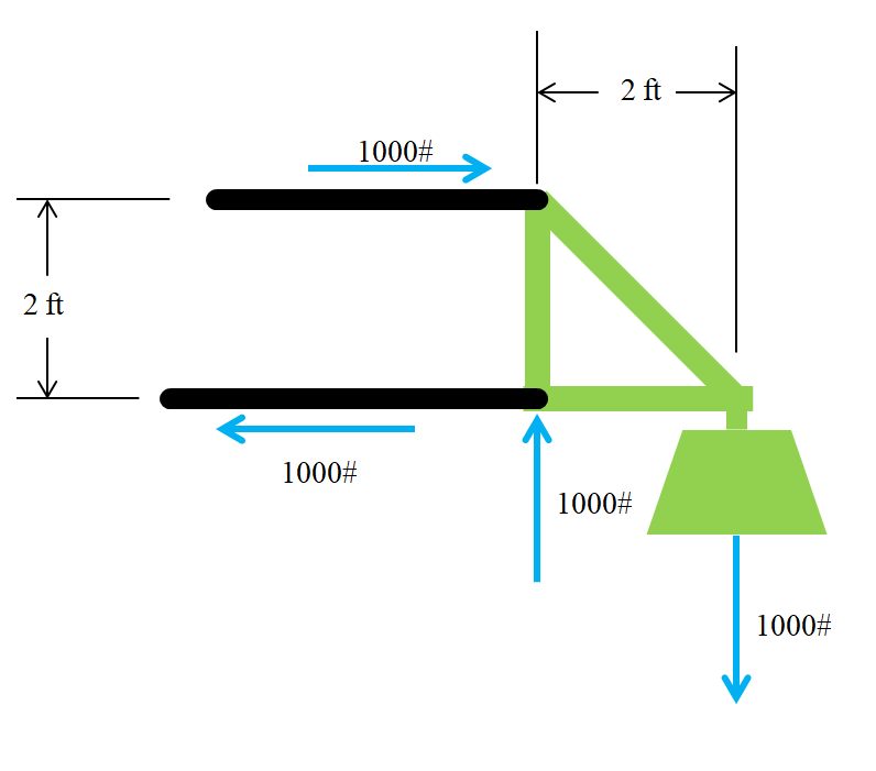 Although it makes sense...it doesn't seem logical.....if the lower arms are lifting the 1000#....the top link is balancing that 1000#.....not lifting it.