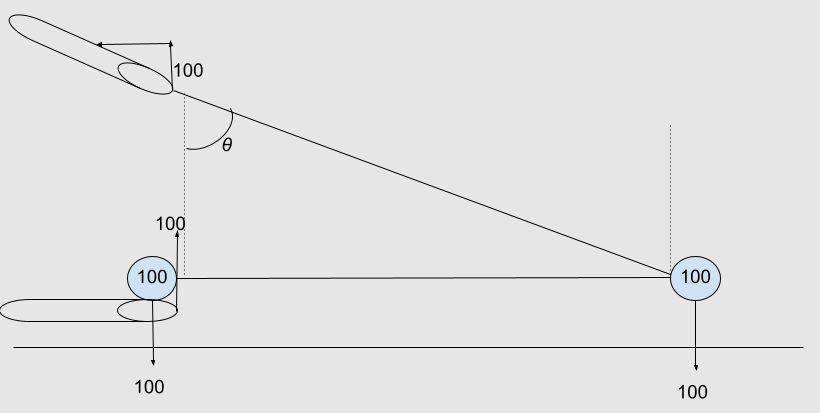 Final pic: top link pulled strongly enough to raise the end to be level with the top link itself (I got tired of drawing 100's and arrows sorry)