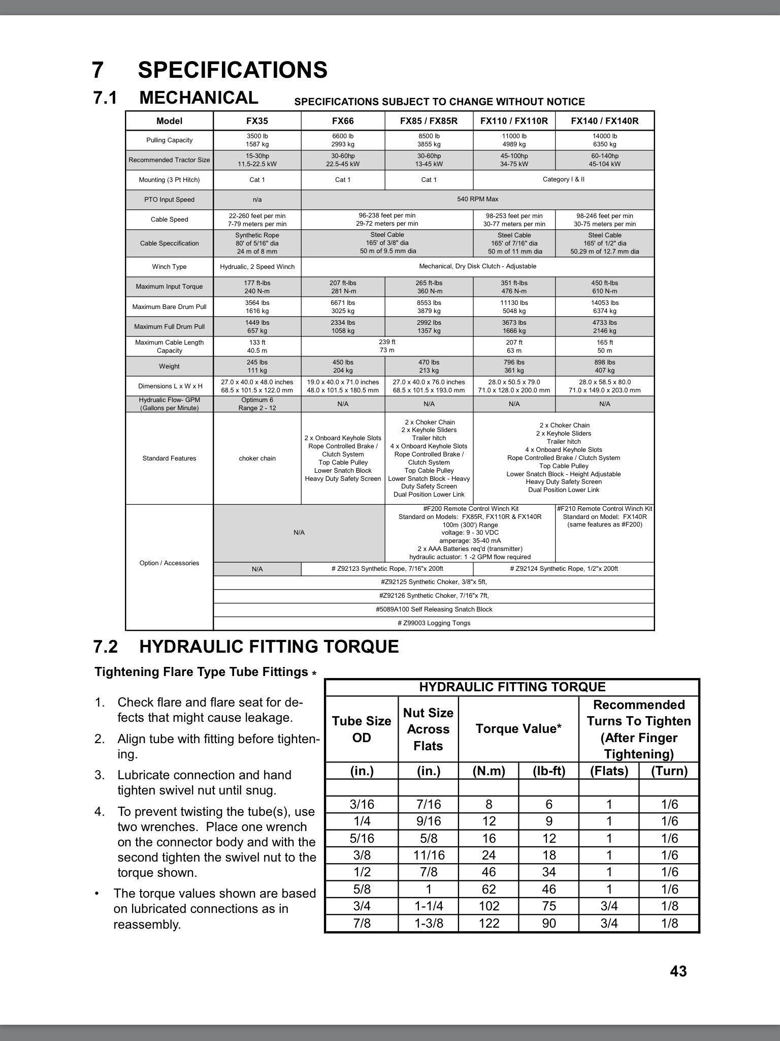 Cables are sized to the load of the winch and go from 5/16" to 1/2" which is the same for all manufacturers. I have used Farmi, Uniforest and Wallenstein winches and honestly feel they all make a good product. I wouldn't get hung up too much on rated pulls. You buy one sized for your tractor and you will be pleasantly surprised on what it can do. All of them can pull enough weight to get you in trouble, so be careful. Once you own a logging winch you will wonder how you ever did without!