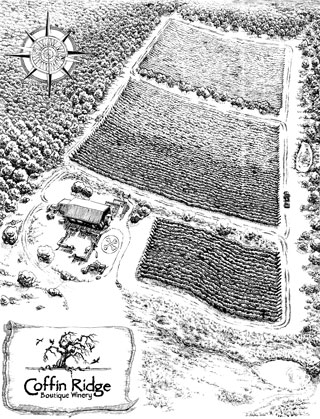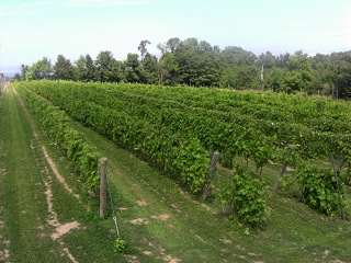 Luremaker - Yes grapes do need good sun. The shot below is looking south. All trees to the left in the picture(east side, another 3 acres) are being removed to get in early morning sun for quick drying of morning dew. On the west side I'm planting an early ripening variety such that a little late day shading should not affect it much. In recent months I've been meeting growers in the Beamsville Bench, Niagara-on-the-Lake, and Prince Edward County areas to discuss cool climate viticulture. They do a terrific job with viticulture and winemaking such that many of us down in cooler areas of the eastern US have much to learn.