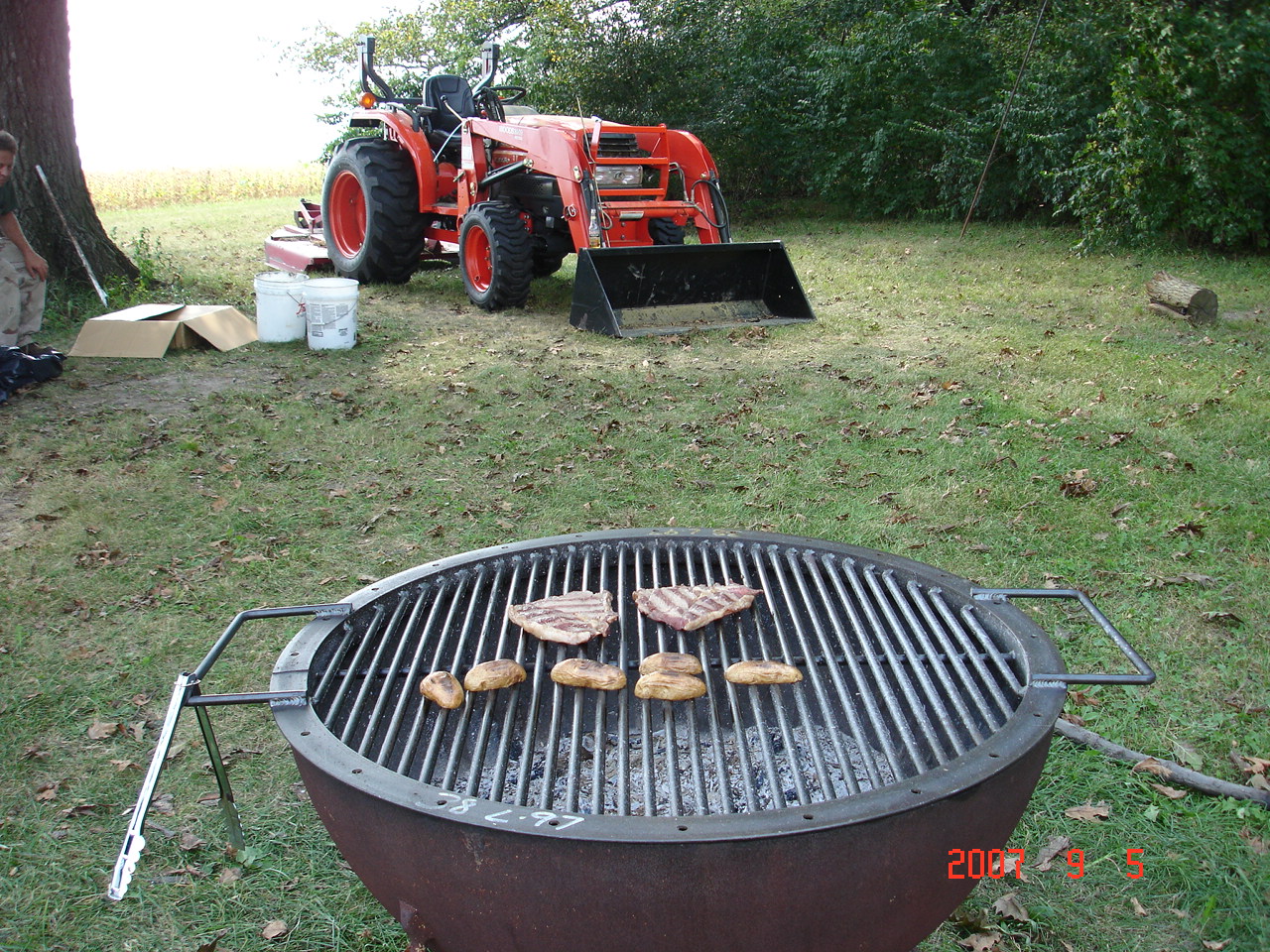 Hi Toolguy, yes I made the grill, the bottom is the end out of a 1000 gal. LP tank, the grill is a 38" ID angle iron ring with 9/16" rod. We burn wood all day then cook over the coals, works great.