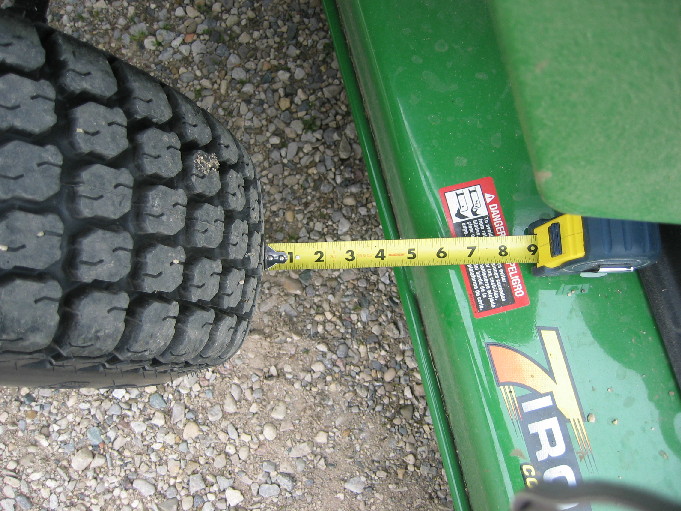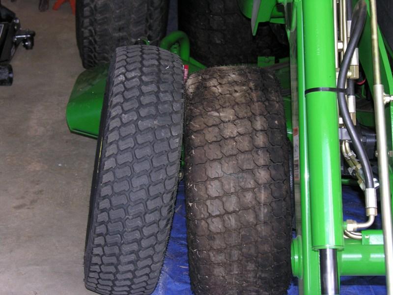 But on the 4310 they fit and only occassionally slightly rubbed when I was mowing in a vertical angle or if the deck went into a bouncy mode on very uneven ground. But that was so rare and I did not even know it until after I stopped the unit and examined the deck. and you can see from the pics that the original R-3s on the 4310 were pretty much as close as you are describing and the turf specials went on with out any issues and performed well. My only concern is the different position of the gauge wheels on my old non-7 Iron deck for the purpose of comparison. The deck I found is a 7 Iron deck, so I would imagine it is the same as yours. If it is clearance and the same scenario exists like the 4310, then it might work without any modifications and that will be fine. I am keeping my fingers crossed:rolleyes: