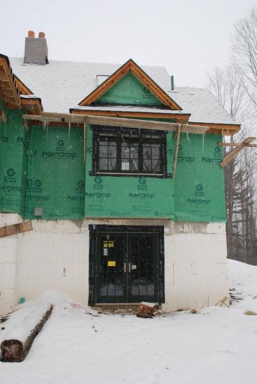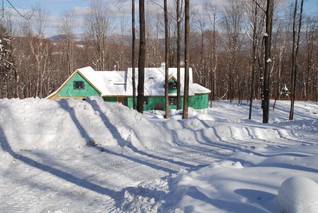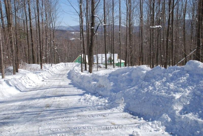 The property is roughly rectangular, around 600 feet x 1800 feet, and is slopes down from the road from 2% to 12%. There is a ravine at the rear that drops down to a creek with slopes around 45 degrees; hard to navigate on foot. If nothing else, our children have a great sled run! We plan to lay our fruit trees just beyond the snow pile in the forground between the driveway and the house. This is slope is around 8% which is navigable and fine for trees, but a garden would wash away. The slope faces southeast, which I understand to be good for fruit trees. We will plant varieties similar to those we left behind in CT, apples, pears, cherry, peaches and plums. We will be planting raspberries, blackberries and blueberries...somewhere, everywhere! The woods is already loaded with black caps. The existing trees are mostly Ash and Sugar Maple; this was pasture until the 1950's, so those Maples are ready to take their first tap. We intend to do a lot of sugaring (probably foreign to your area
