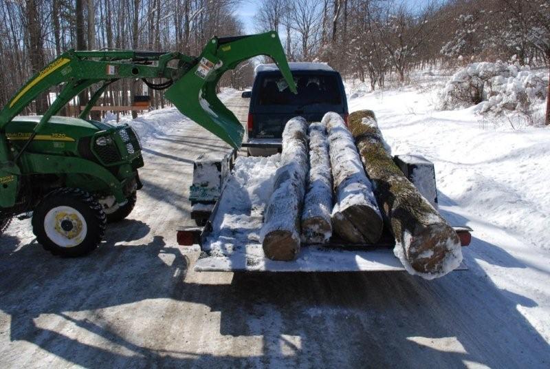 To update on the first impressions; I took the tractor between our homes for the second time to clean out the snow in Pawlet. It was just to deep this time for the shovel! Last time I had the backhoe on, and had to drop into third gear on some of the hills. This time I had on the rear blade, and made it up all the hills in 4th. That 1000 lbs makes a difference. I've done plenty of snow removal with the loader mounted blade. It works great, although I often need to get on the steering brakes to keep the edges of the drive pushed back. The chains turned this machine from nearly useless to unstopable. Our driveway got iced up pretty bad with the warm spells we had a few times. I am currently looking for a PTO sander, although I may get a reciever mount style and weld a reciever to the back blade. I like leaving that blade on because it can dig down through the ice when needed, and the snow plow tends to float on top. This tractor has been everything we hoped and more! Now I need to find a trailer like Tony's to take hayrides down to the lake for ice skating!