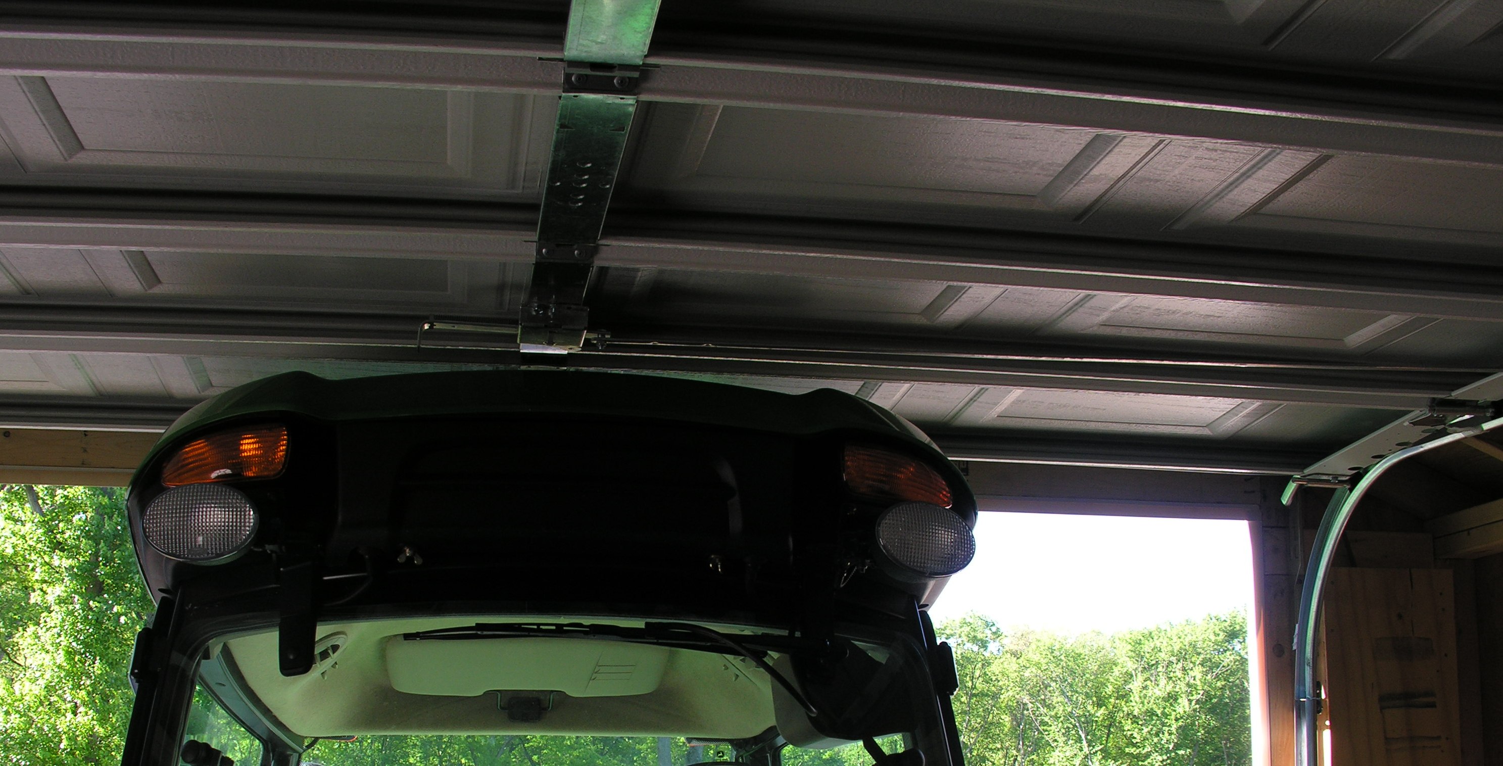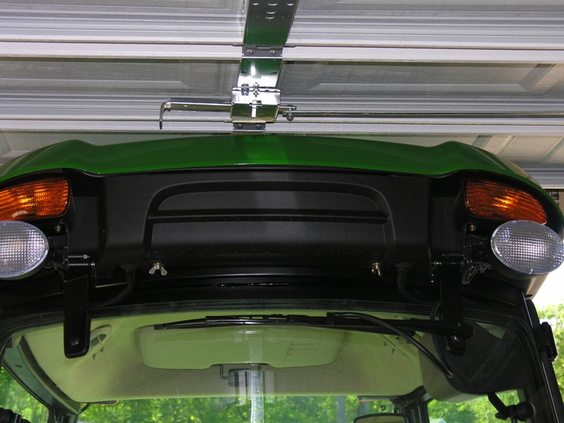 Here is how tight a fit the 3520 is in the garage/shed! I hope this comes out in order but you can see how close it is with the small R-4's. The specs indicate that with the superTurfs, the unit rides a tad bit lower than the R-4s, even though they are taller. I hope that is the case!:eek: