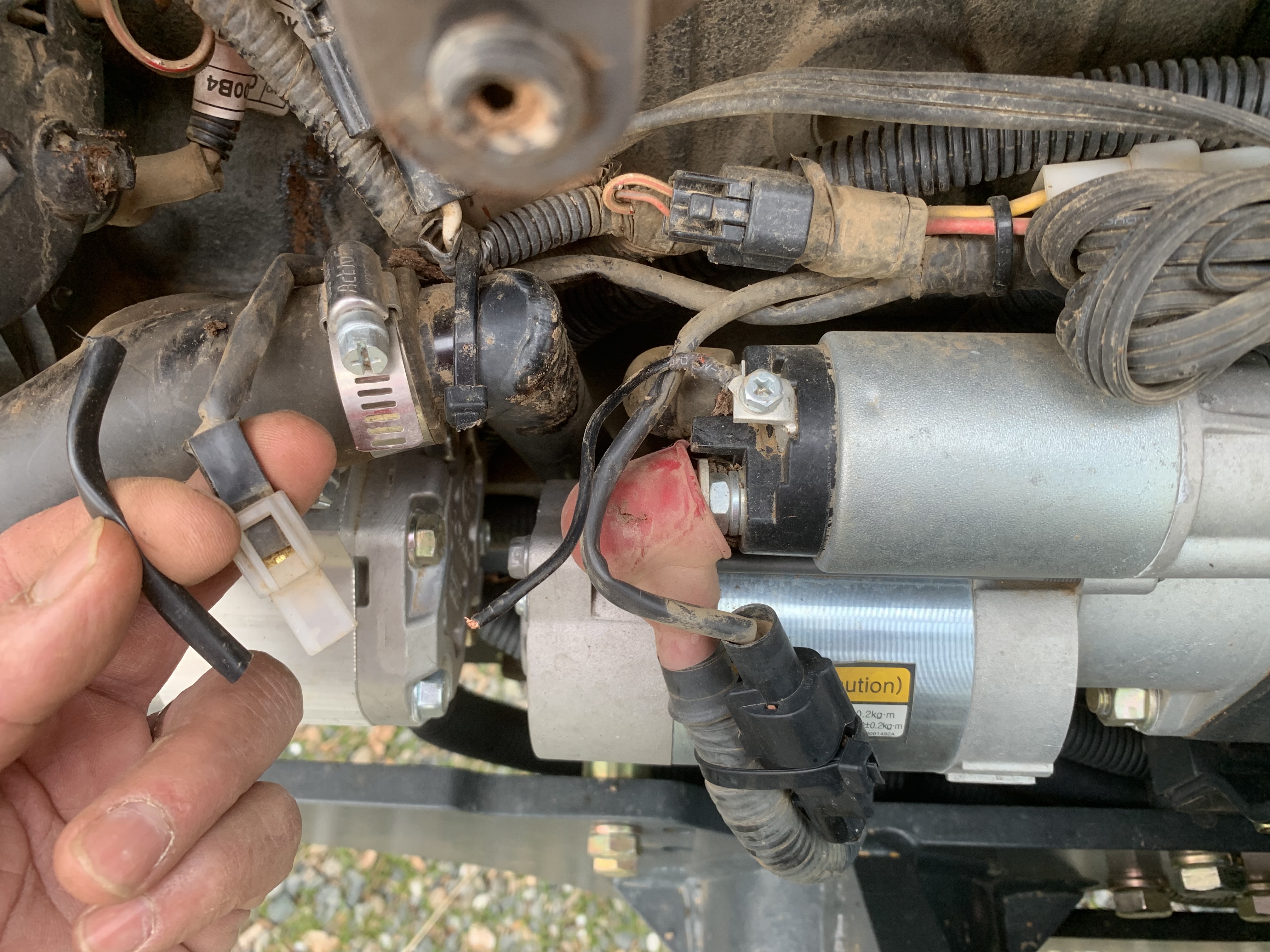 I was using my tractor earlier to move many wood chips (tree crews have been active clearing power lines and left a nice huge pile of chips for me), probably about two and a half hours worth of tractor running at 2k+ rpm. I pulled over and parked the tractor for a bit - 10 minutes to take a break - and when I came back and turned the key, there was a solenoid clunk and no engine turnover. I turned off the key, tried again, no clunk, no dash lights. Tried again 10 minutes later; dash lights on, brief click and nothing else again.