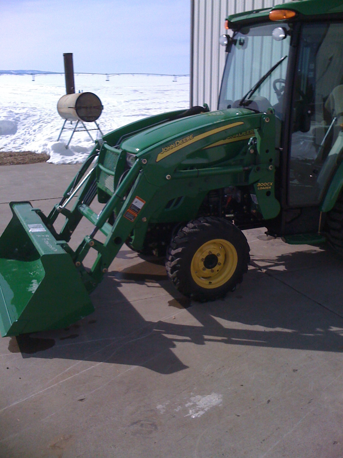 BINGO!!!! Finally got the 300CX loader here today and Deere techs installed it. Can already tell the lifting power over the old 300 loader, just with a bucket full of snow.:cool::cool: Only thing that bothers me is the loader masts are AWEFULLY close to the glass when installing it!!!! Kinda makes a person nervous!!