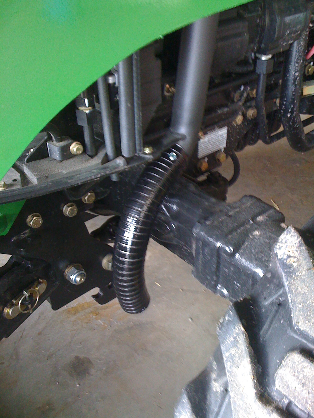 Put the brush guard on too, before install I added a pc of expanded metal to the stock guard, and repainted, (was WAY cheaper than buying the deluxe Deere guard);) I cut a notch in the lower cross bar to allow the upper link to travel a couple inches further. Still don't have full "up" travel of the blower but it helped. I glued a pc of 5/16" fuel line onto the notch to act as a bumper of sorts with the link. See how long that lasts;) May just remove the guard for winter months.