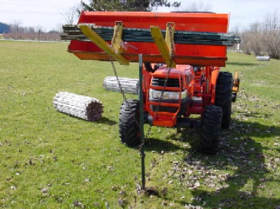 You stick the T-post into this receiver, maybe use a bungee on one of those **** to hold it up in there, and the T-post should hang nice and plumb and be ready for you to lower the bucket and push it into the ground.
