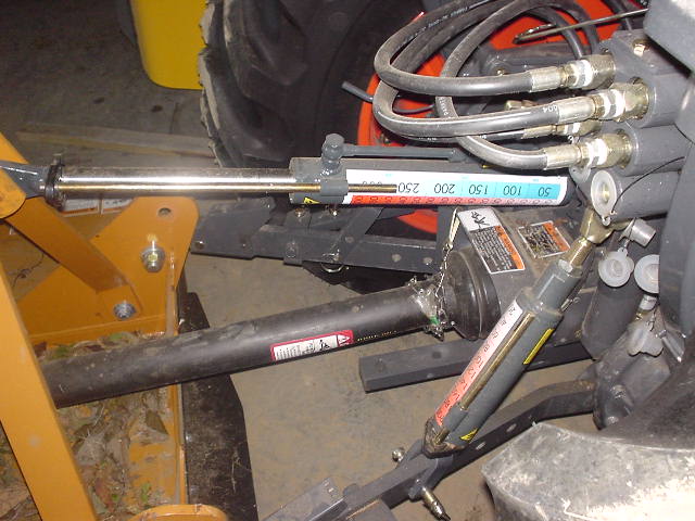 I got a Kubota BX24 last fall with a dealer-installed top-and-tilt kit from Gearmore. Tilt cylinder is on the right side (with the factory threaded link on the left). Right now, with the threaded link almost all the way extended, the box blade is level with the tilt cylider almost all the way compressed.
