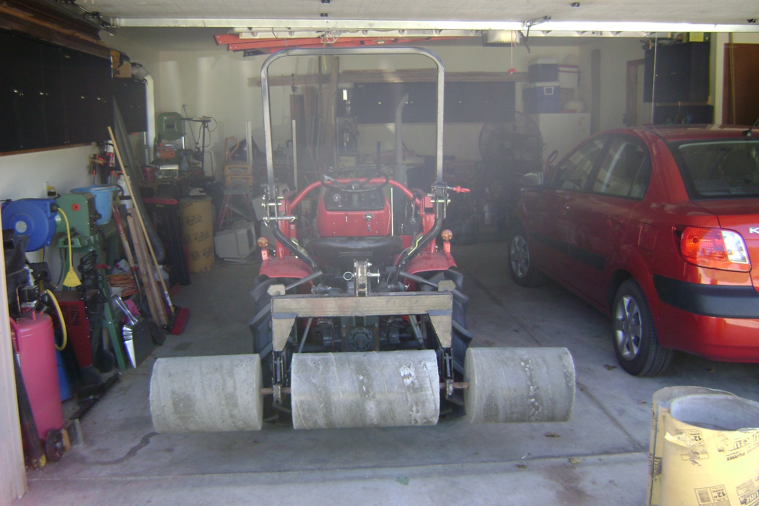 I was thinking about how to ballast the back of my 2020D. Besides adding rim guard to the tires I was thinking of taking a 55 gallon drum and putting a 7/8 inch bar horizontally to attach to the the 3pt. How much weight in cement bags should I be thinking about?