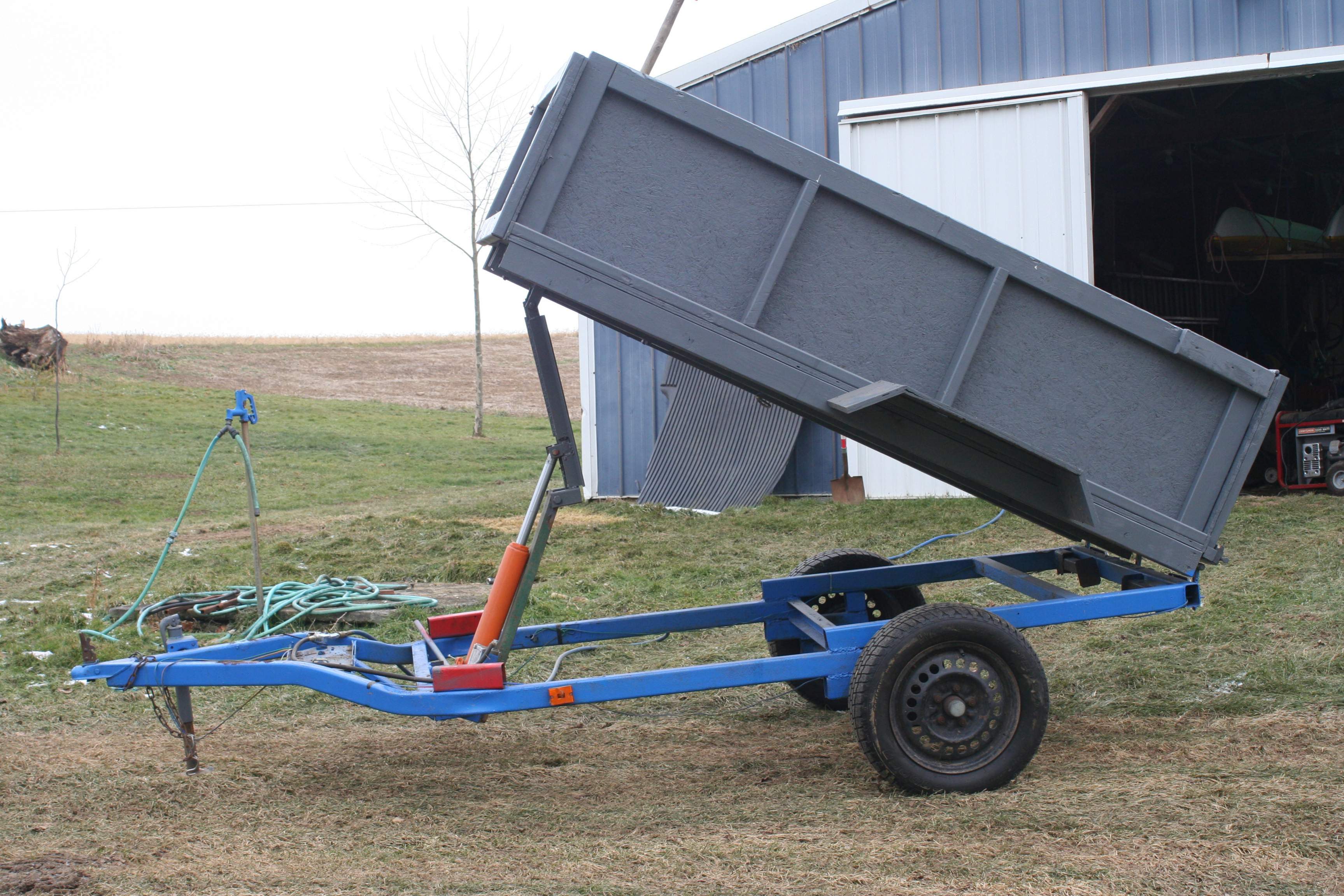 I can't put ramps in, I've tried, I have to all but jack knife the trailer to the basement window, also attached is the pics of my dump trailer, manual pump or air, it does work great just not for what I want.