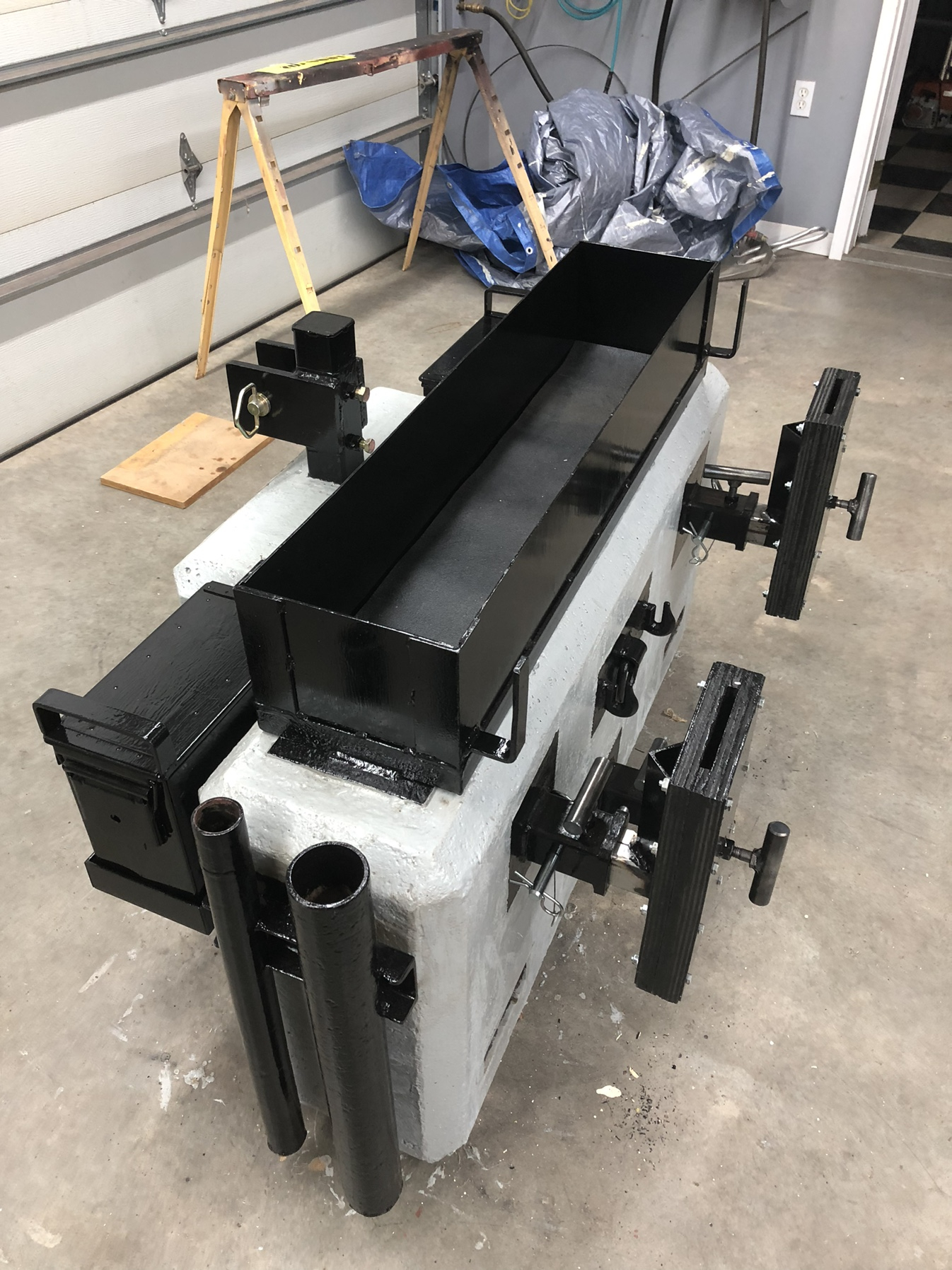 Wow. That is slick. Well done.Here it is with the ammo cans and chainsaw mounts installed. I reworked the ammo can lid handles by cutting off the center handles and welded on a section of 4x6 square tubing cut to the appropriate size. The chainsaw mounts were fabricated from plywood sandwiched between some 14ga sheet metal. The pinch bolts were installed to keep things from ratting around when moving.View attachment 733133View attachment 733134View attachment 733135