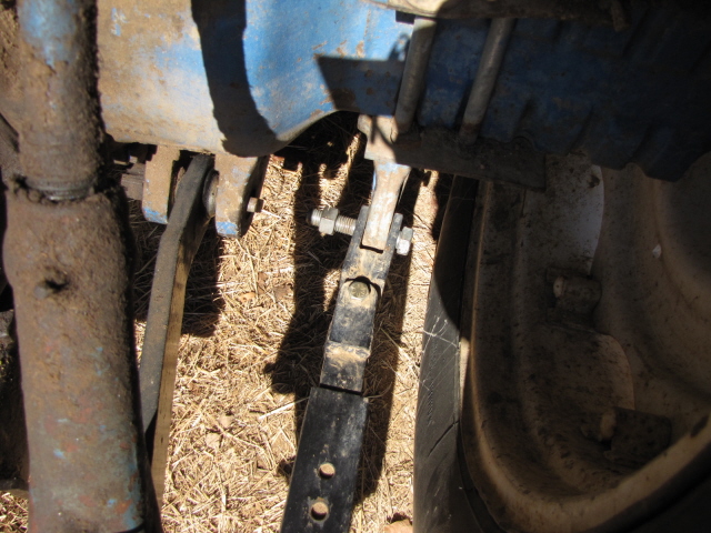 If this doesn't work, cut you some plates, drill to match the bolts that hold your fender onto the axle and a hole to line up with the holes in your lower link arm. The plate well end up being L shaped.