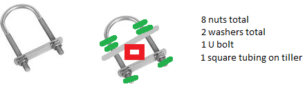 tightening up the nuts. and it will cause the 2 washers to bend right around the square tubing on tiller.