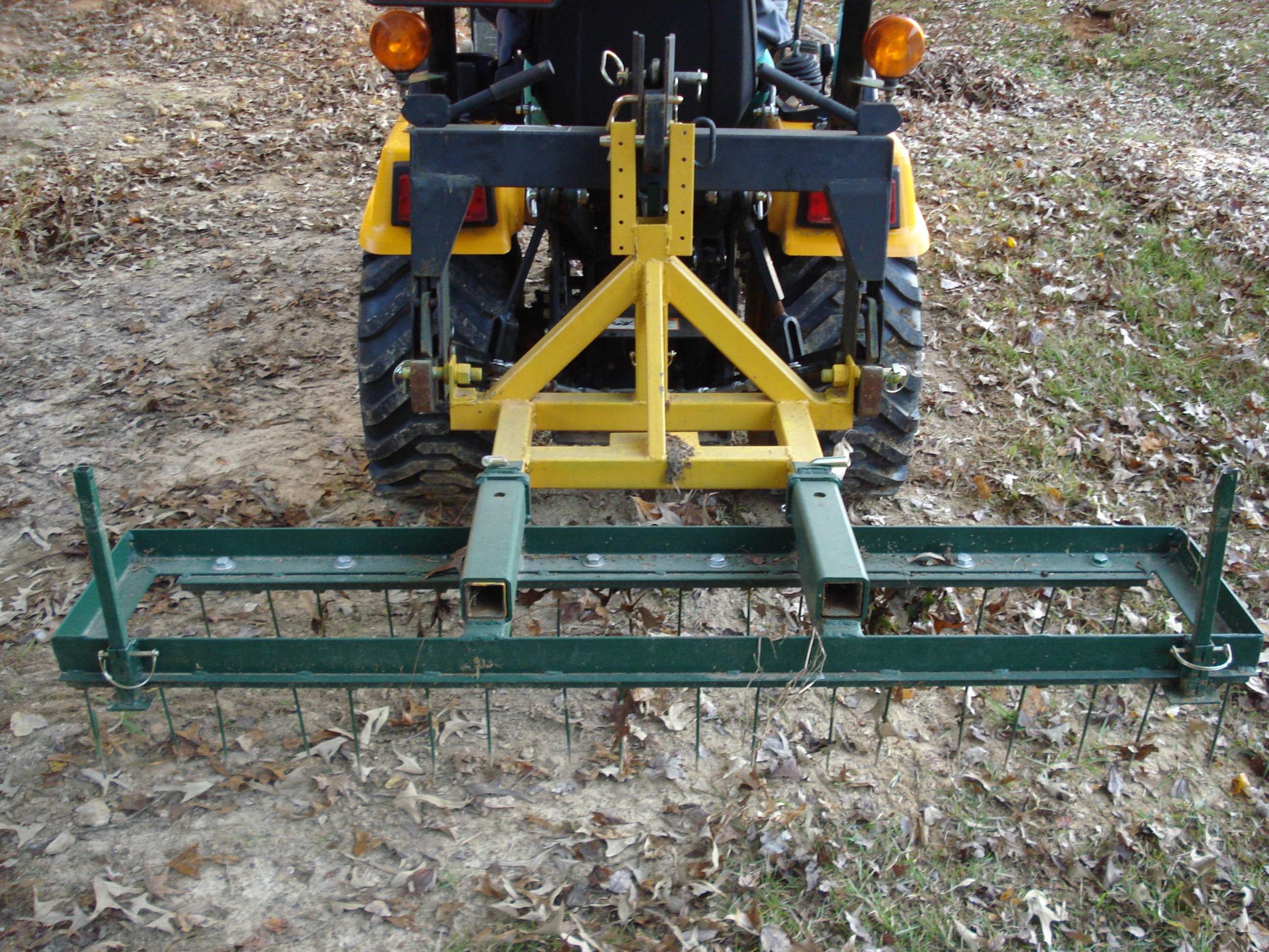 I built a 5' yard thatch rake for my universal 3pt tool bar. It is simple enough and seems to work well enough. I plan to work on a front 3pt hitch (European style) so I can use it ahead of the mower deck....